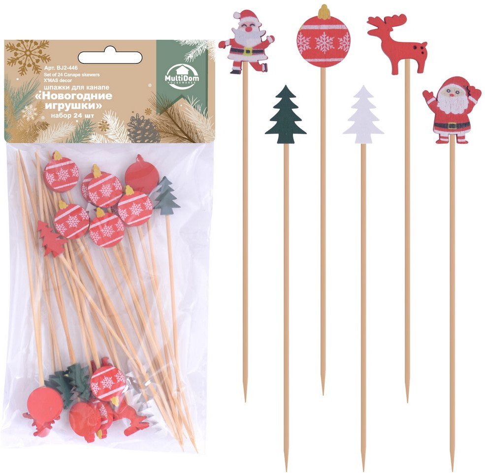 Мультидом Трейдинг Набор шпажек для канапе «Новогодние игрушки»В данный момент этот товар отсутствует в продаже. Возможно, у нас найдется аналогичный или похожий товар здесь. Шпажки используются при сервировке стола многослойными мини-бутербродами (канапе) из овощей, фруктов, ягод, сыров и мясных продуктов. Идеально подходят для фуршетов, вечеринок и праздников. Выбирайте любимые ингредиенты для приготовления порционных блюд, насаживайте их на шпажки и готовьте с удовольствием! Шпажки заменят десертные вилочки на вашем праздничном столе, а оригинальный дизайн поднимет настроение гостям. Шпажки продаются в наборе по 24 штуки, это оптимальный вариант, если вы планируете позвать большое количество гостей. Шпажки предназначены для одноразового использования. Изготовлены из дерева (бамбук). Общая длина шпажки 12 см. |