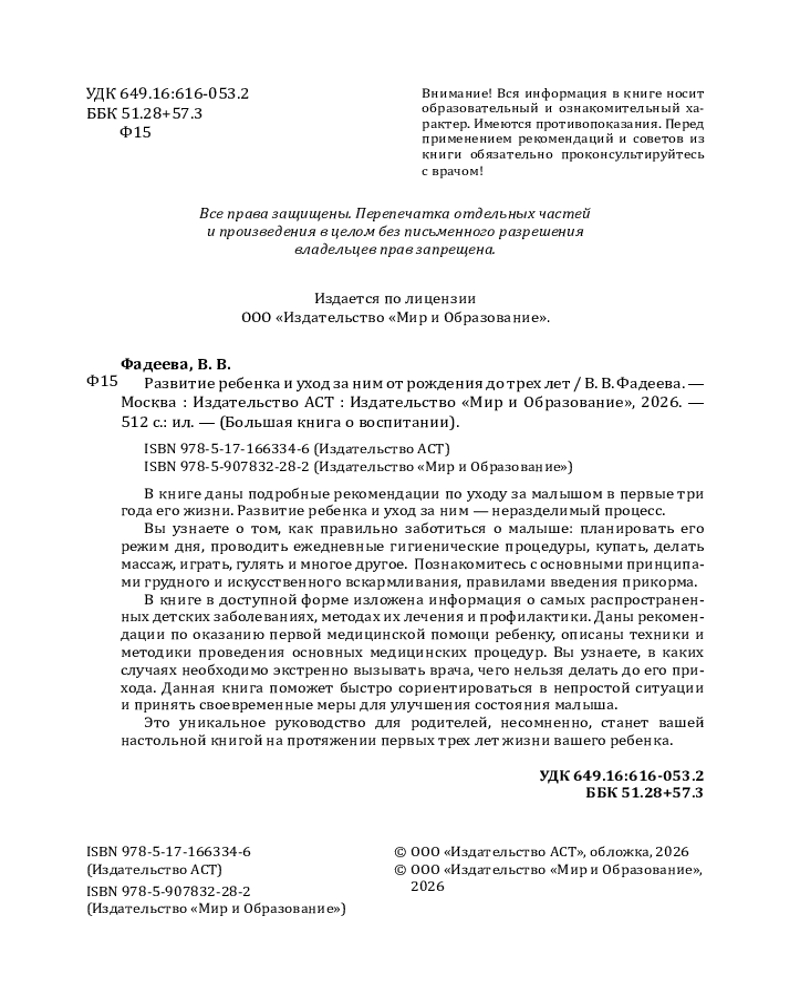 Серия: Большая книга о воспитании В книге даны подробные рекомендации по уходу за малышом в первые три года его жизни. Развитие ребенка и уход за ним — неразделимый процесс. |