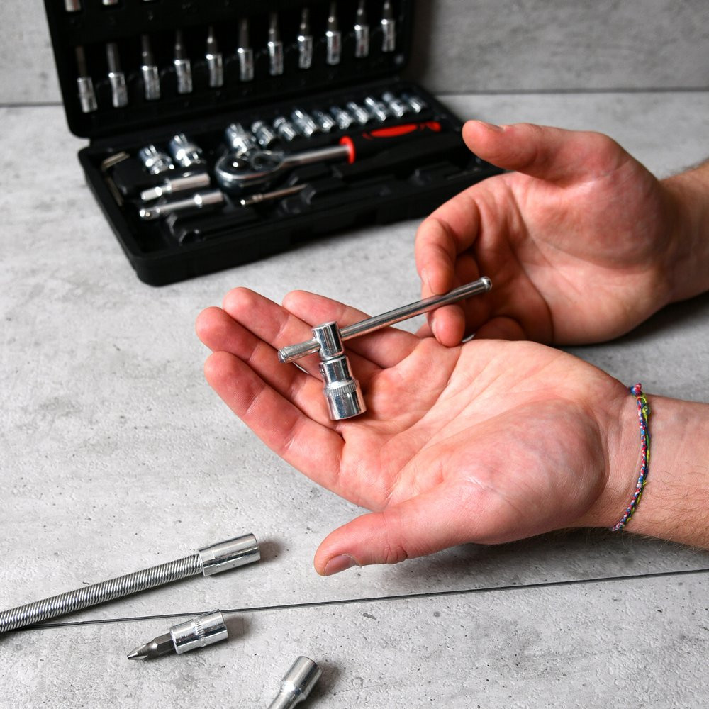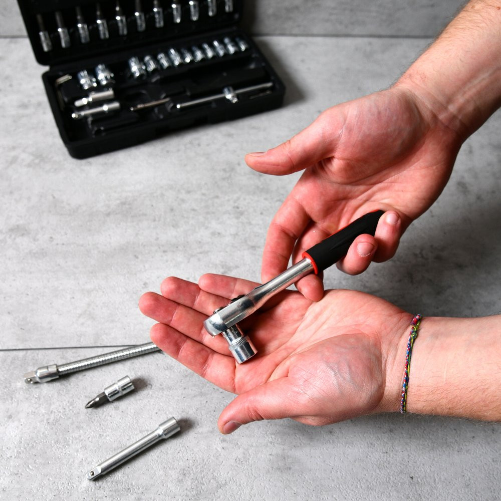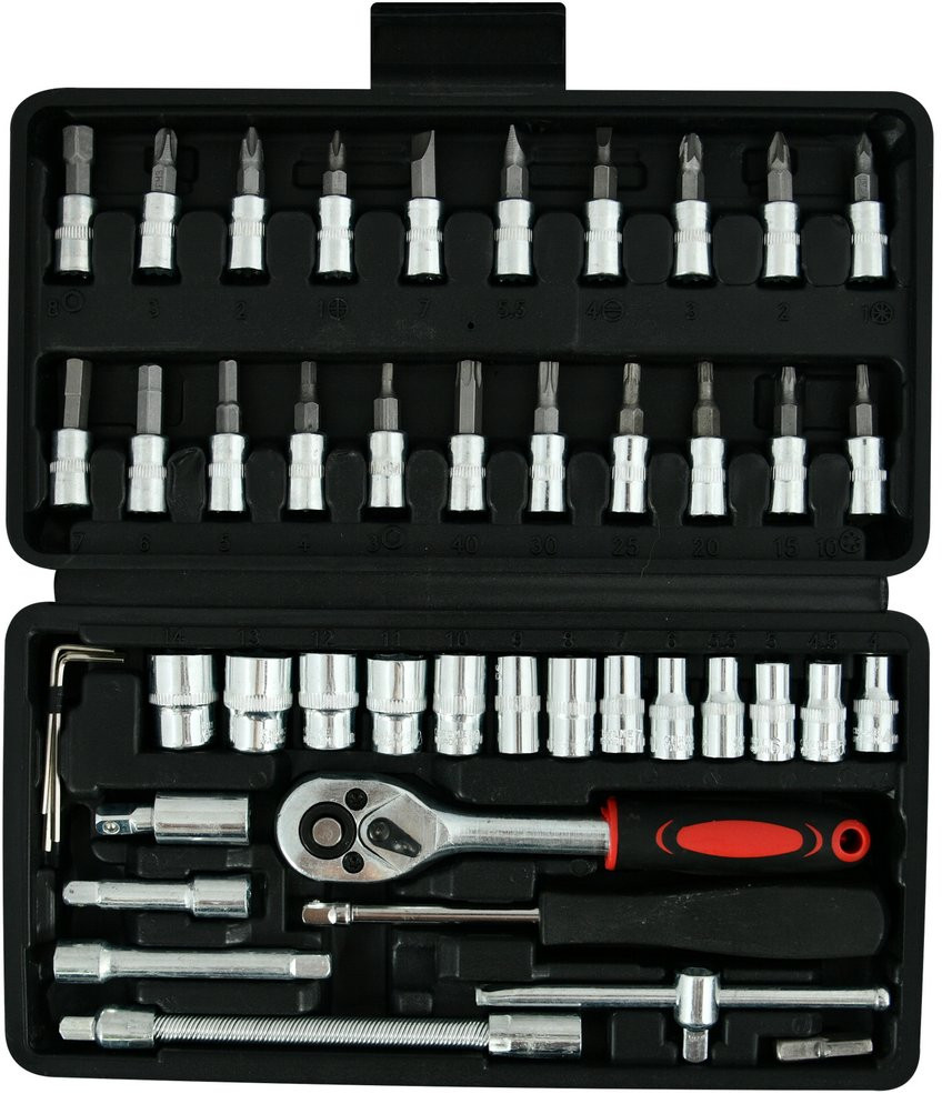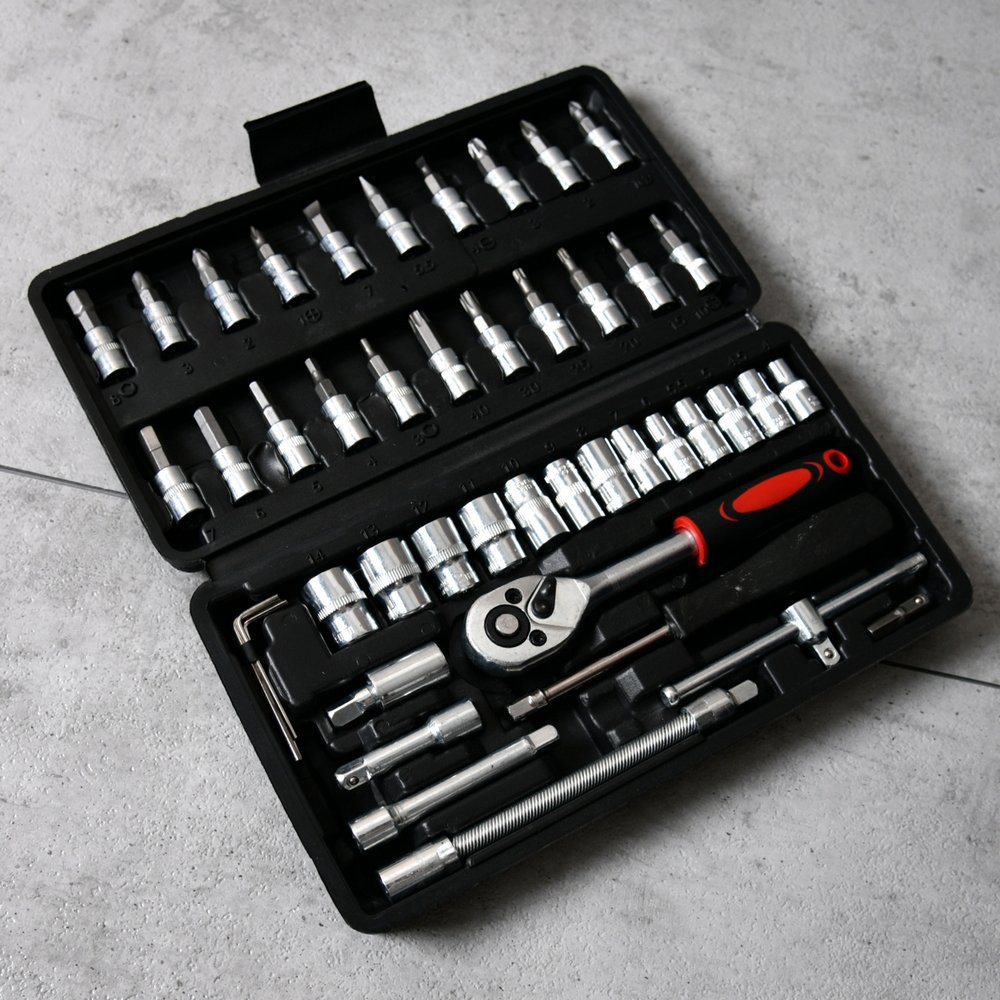 Набор инструментов — это идеальное решение для тех, кто ценит качество и точность в работе. Универсальный набор включает в себя 45 предметов, что позволяет использовать его для самых различных задач — от мелкого ремонта в домашних условиях до серьезных проектов. Такой набор в удобном футляре для хранения станет надежным спутником в ремонте и строительстве.