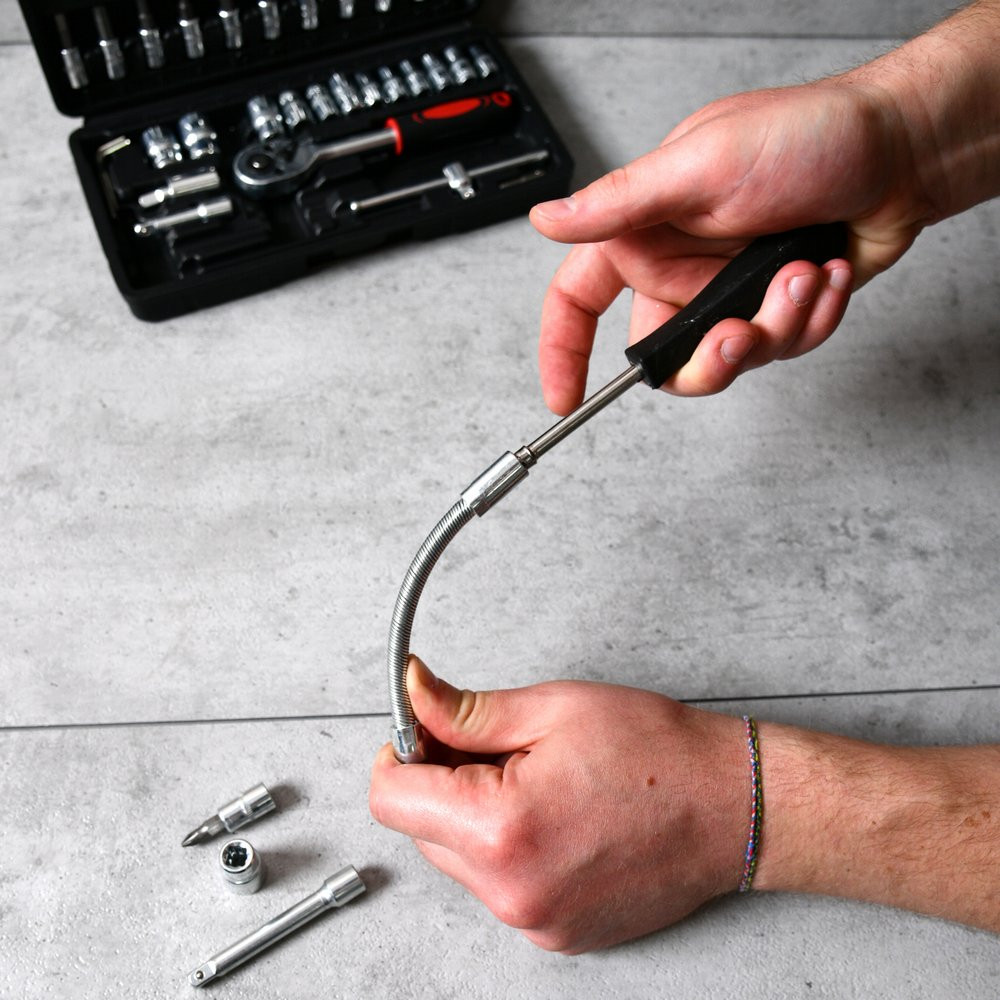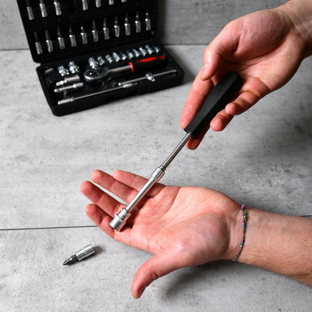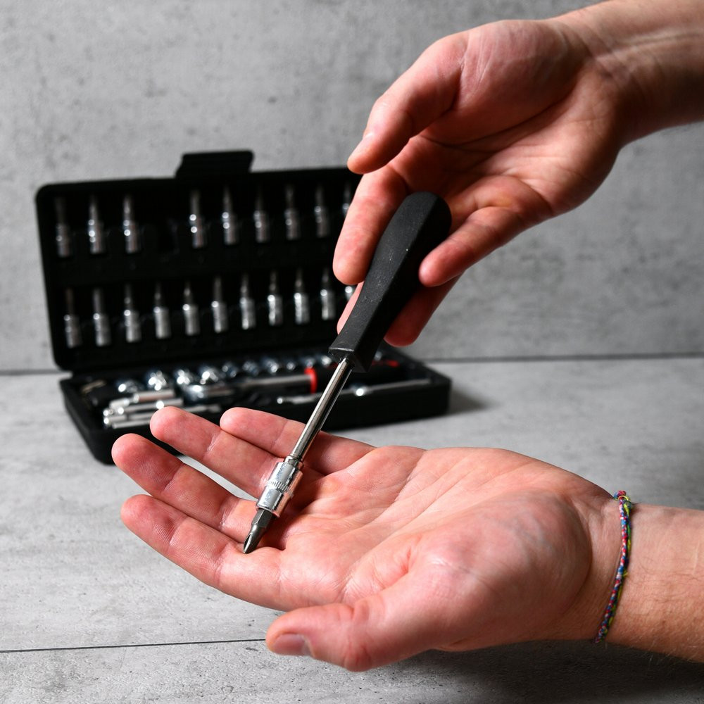 Набор инструментов — это идеальное решение для тех, кто ценит качество и точность в работе. Универсальный набор включает в себя 45 предметов, что позволяет использовать его для самых различных задач — от мелкого ремонта в домашних условиях до серьезных проектов. Такой набор в удобном футляре для хранения станет надежным спутником в ремонте и строительстве.