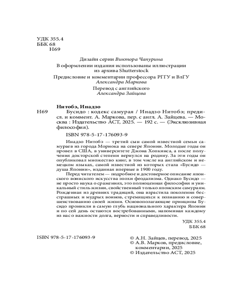 Серия: Эксклюзивная философия Инадзо Нитобэ — третий сын известной семьи самураев из города Мориока на севере Японии. Перед читателем — подробное и достоверное описание японского воинского искусства эпохи феодализма. Однако Бусидо — не просто наука о сражениях, это полноценная философия и уникальный стиль жизни, свойственный только японским самураям. Рожденная из древних традиций, она взрастила поколения бесстрашных и мудрых воинов, стремящихся к познанию и совершенствованию своей жизни. |