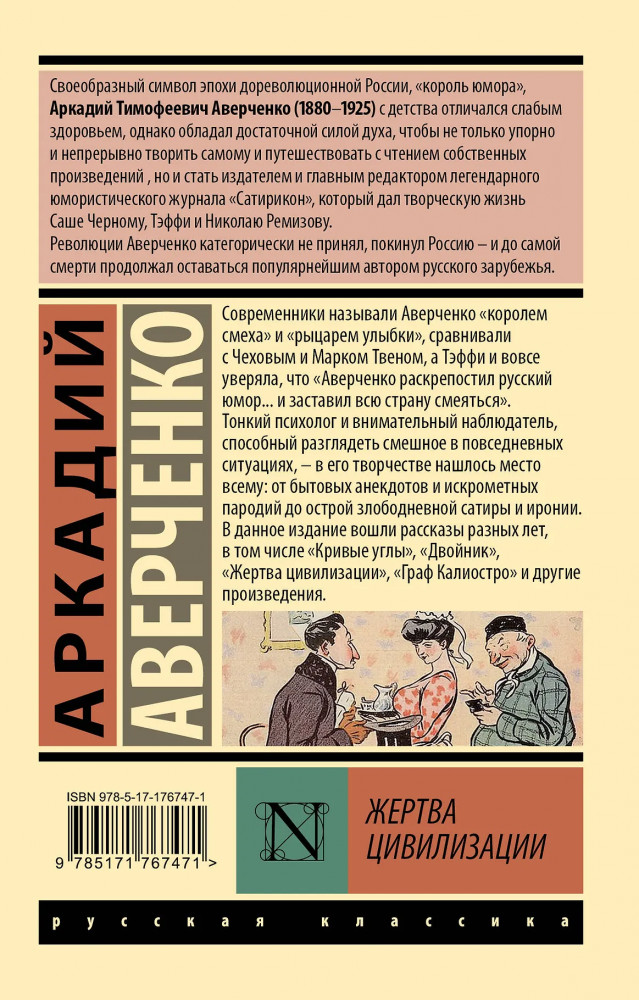 Серия: Эксклюзив: Русская классика Современники называли Аверченко «королем смеха» и «рыцарем улыбки», сравнивали с Чеховым и Марком Твеном, а Тэффи и вовсе уверяла, что «Аверченко раскрепостил русский юмор... и заставил всю страну смеяться». |