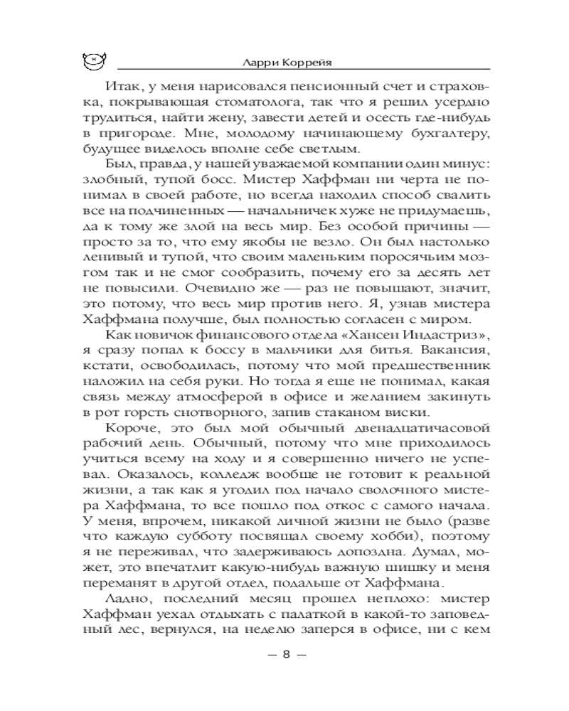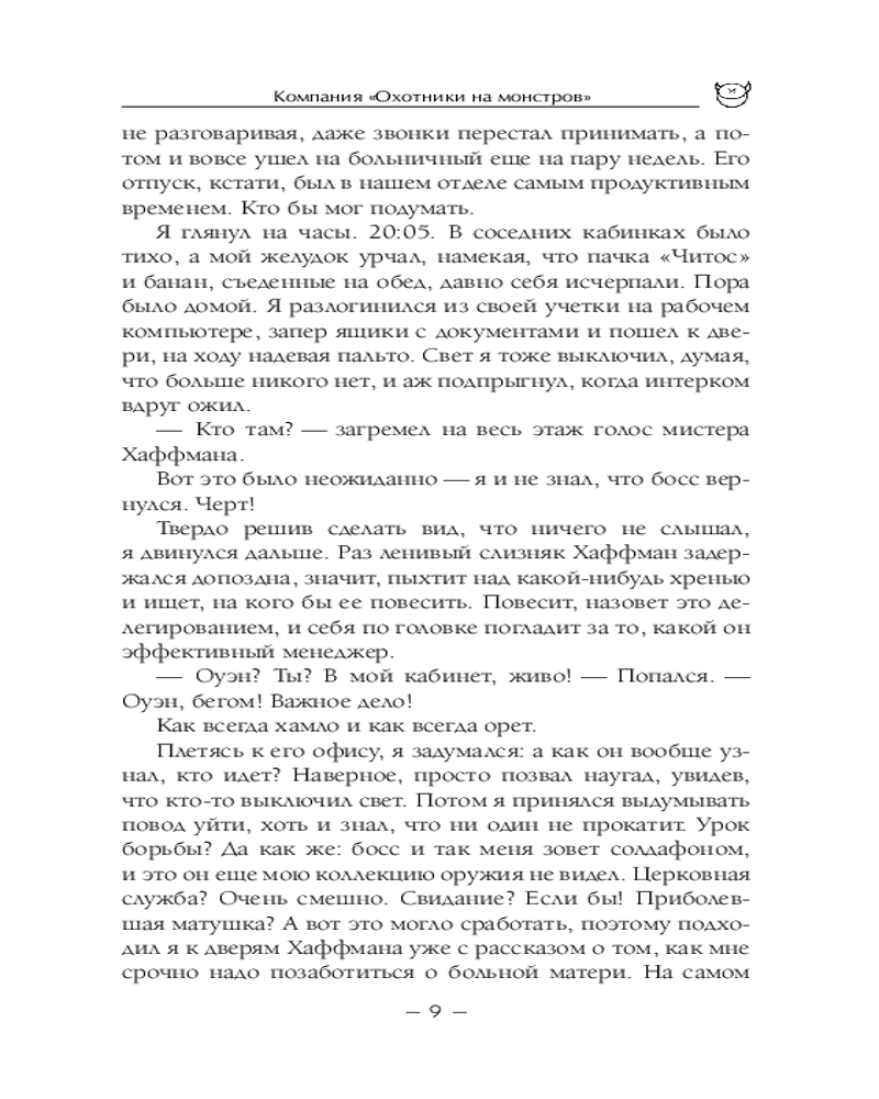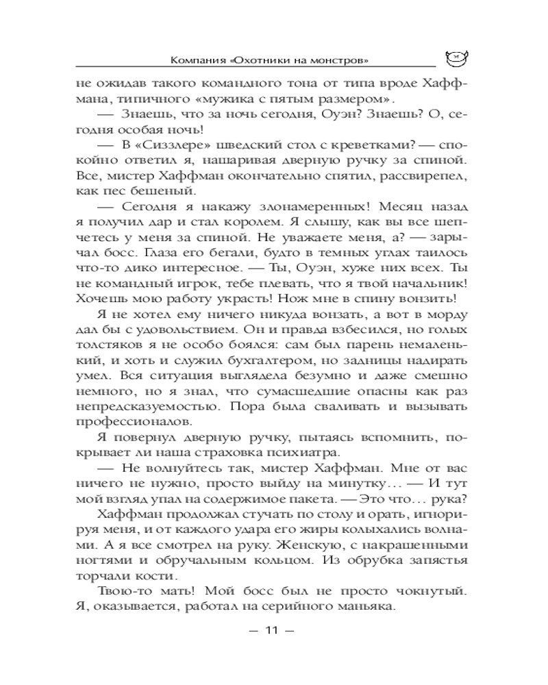 Серия: НоваФикшн. Зарубежная городская фэнтези Через пять дней после того, как Оуэн Застава Питт выбросил своего невыносимого босса из окна четырнадцатого этажа, он очнулся в больнице со шрамом на лице, невероятными воспоминаниями и предложением о работе. |