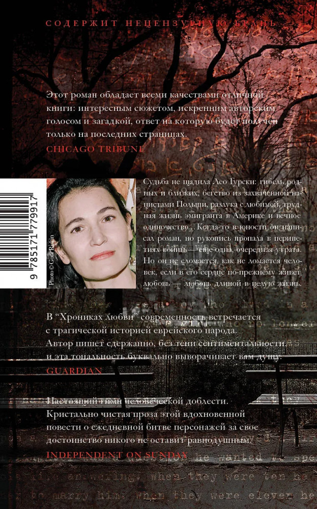 Серия: Corpus.(roman) Что может быть общего между одиноким стариком и девочкой-подростком, названной в честь героини романа, если они не родственники и даже не знакомы друг с другом? Лео Гурски последние 50 лет живет в Нью-Йорке, куда ему удалось бежать из захваченной нацистами Польши. Свою единственную ценность — рукопись романа, написанного как признание в любви прекрасной Альме, он перед расставанием доверил другу, о котором с тех пор больше никогда не слышал. Убежденный, что потерял не только рукопись и друга, но и любимую девушку, он осваивает ремесло слесаря по замкам и живет скромной и незаметной жизнью простого работяги, даже не догадываясь, какой сюрприз готовит ему судьба на закате дней. |