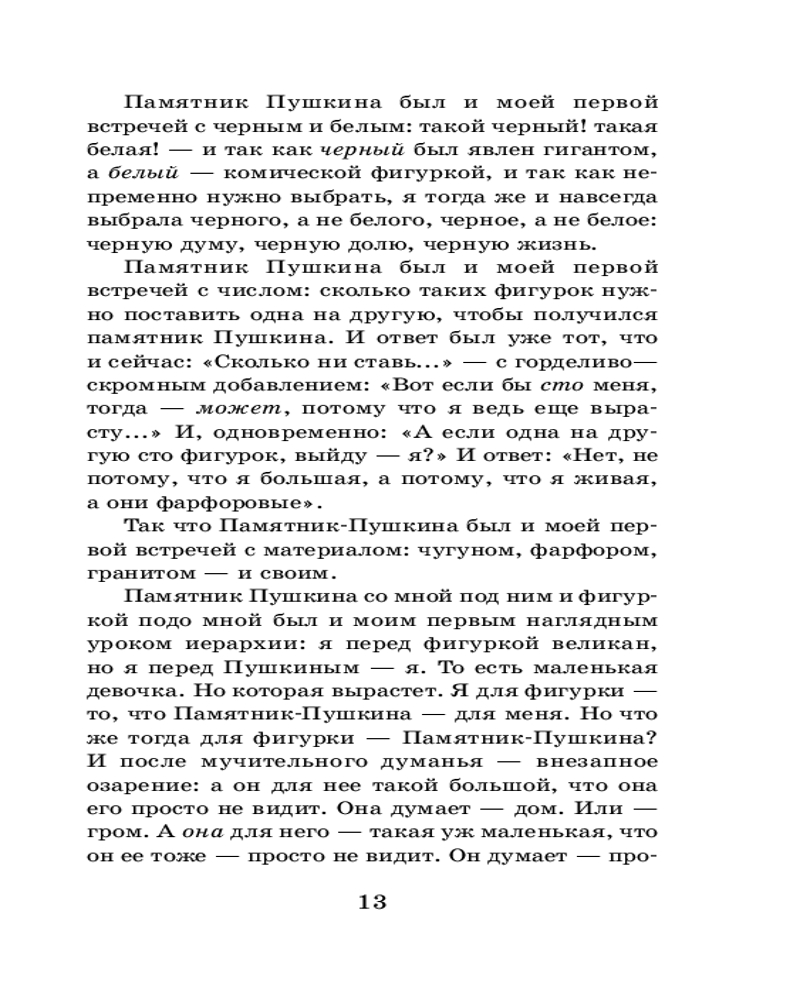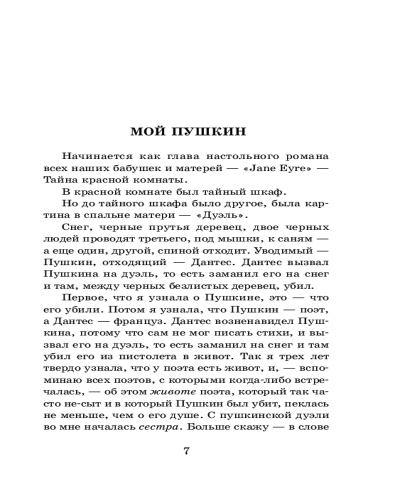 Серия: Классика для школьников Очерк «Мой Пушкин» входит в программу углубленного чтения по литературе в 11-м классе. Марина Ивановна Цветаева (1892–1941) — великая русская поэтесса, прозаик и переводчица. А.С. Пушкин был для Марины Цветаевой не просто любимым поэтом, а духовным ориентиром и идеалом. Очерк «Мой Пушкин» (1937) — это глубоко личный рассказ о том, как Пушкин вошёл в её жизнь, как формировал её поэтическое мировоззрение и как повлиял на её судьбу. «Мой Пушкин» — это попытка Цветаевой понять и раскрыть гений поэта через призму собственного опыта. Цветаева не столько рассказывает о Пушкине, сколько говорит о себе через Пушкина. В книгу также вошли очерк «Пушкин и Пугачев», эссе «Искусство при свете совести», поэтический цикл «Стихи к Пушкину» и лирические произведения Марины Цветаевой. |