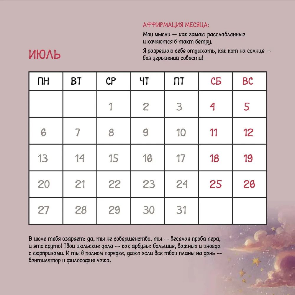 Серия: Счастливый календарь Вдохновение, приди! Вдохновение, приди!.. В пробке где-то стоит, наверное, нет его и нет. А вместе с ним нет и желания что-то делать. Но тут вдруг: «Шур-шур-шур!» Это ты открыл волшебный календарь на 2026 год от автора бестселлеров Зои Арефьевой. Чудесатый мир на иллюстрациях каждый день будет напоминать: волшебство совсем рядом, нужно только верить в него. |