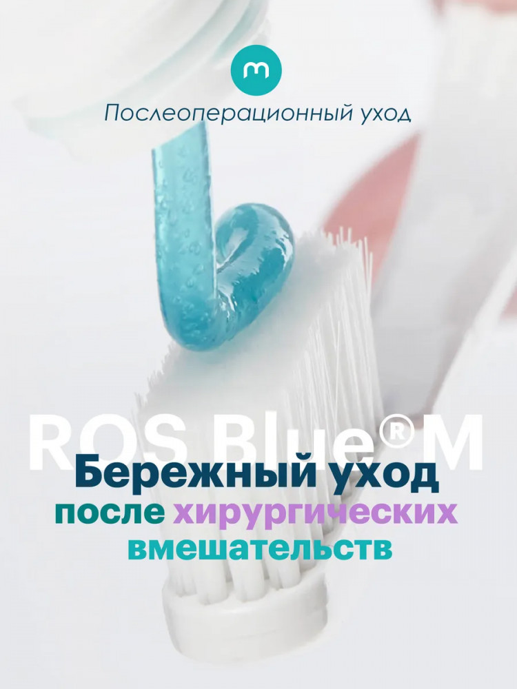 Ультрамягкая зубная щетка BlueM специально разработана для бережного ухода за зубами и мягкими тканями полости рта в постоперационный период. Овальная форма головки облегчает доступ к труднодоступным местам, а ультратонкие мягкие щетинки, которые плотно прилегают друг к другу, превосходно справляются с любым видом налета. Эргономичная ручка и силовой упор уникальной формы позволяют максимально контролировать процесс чистки зубов. Тип щетинок: ультрамягкий. Данная щетка рекомендована после хирургического вмешательства; после установки имплантатов (первые 4 недели); тем, кто имеет раны в полости рта. |