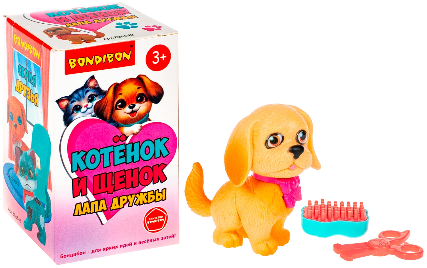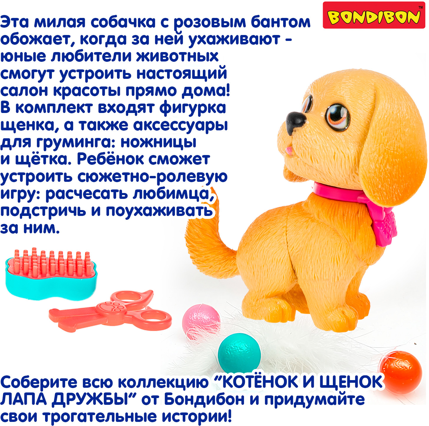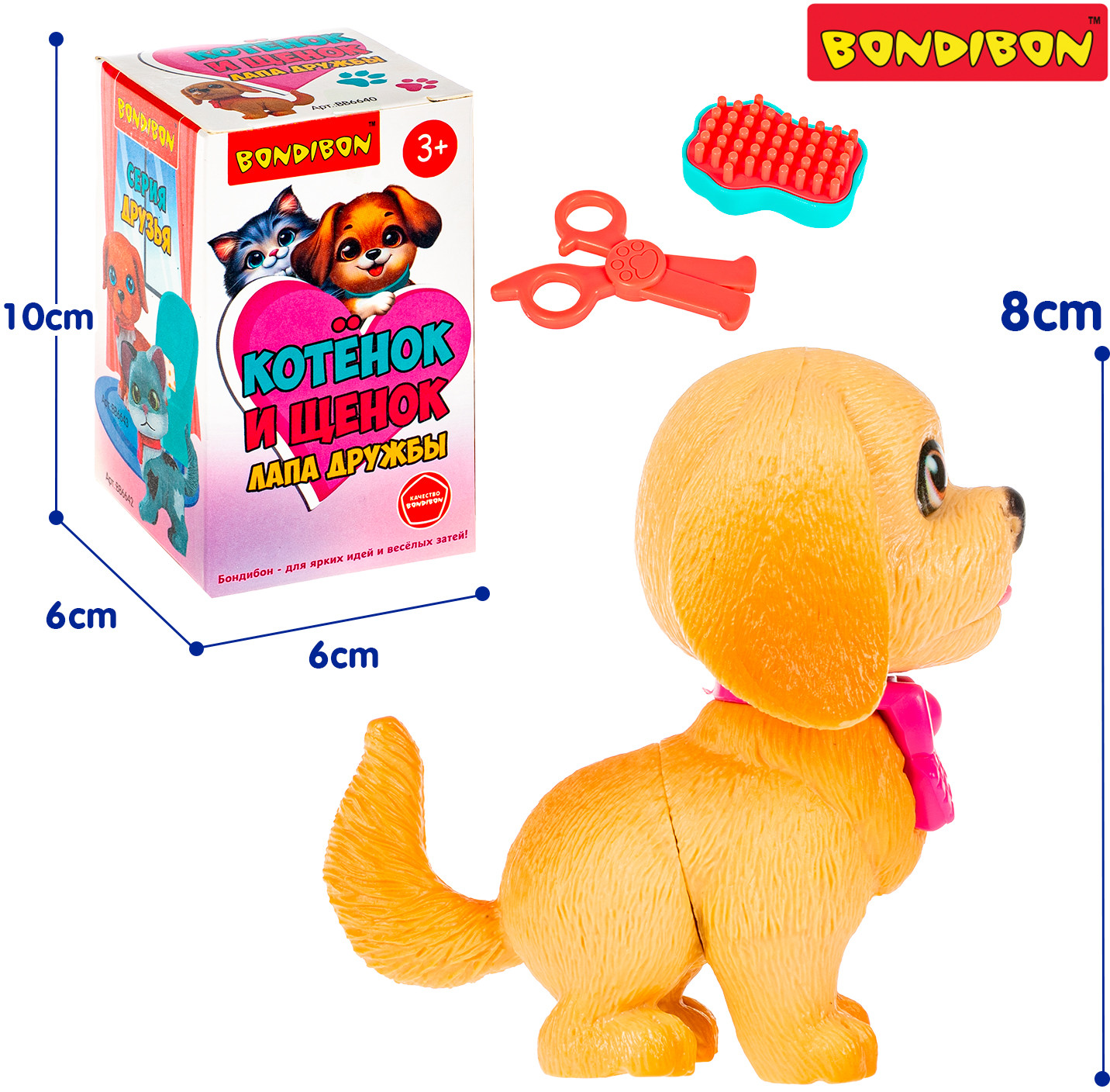 Серия: Котёнок и щенок. Лапа дружбы Добро пожаловать в мир заботы и дружбы с игровым набором «Котёнок и щенок. Лапа дружбы» от Bondibon! Очаровательная бежевая собачка с розовым бантом готова отправиться в салон красоты, где её ждут настоящие спа-процедуры. Этот набор не только порадует ребёнка милой игрушкой, но и вдохновит на добрые и познавательные сюжетно-ролевые игры. Игровой набор салон красоты включает фигурку щенка и тематические аксессуары: расчёску и ножницы. Ребенок может расчесать любимца, устроить ему модную стрижку и придумать целую историю о питомце. Игры с набором способствуют развитию фантазии, эмпатии и сюжетного мышления. |