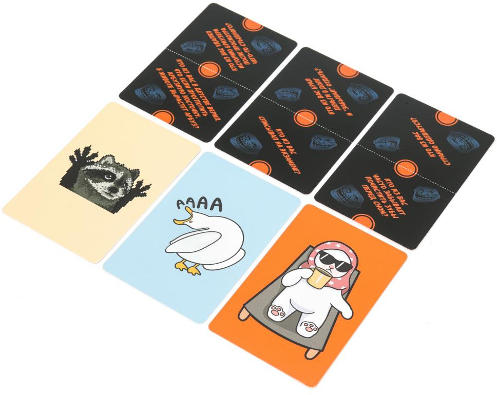 Умные игры Игра карточная «Троллинг»В данный момент этот товар отсутствует в продаже. Возможно, у нас найдется аналогичный или похожий товар здесь. Карточная игра «Троллинг» ТМ «Умные игры» — весёлая игра для вечеринок и семейных посиделок! В наборе игры 40 карт с каверзными вопросами и забавными персонажами. Задача игроков — угадать, кого из них выбрал ведущий при ответе на не самые простые, но жизненные вопросы. Узнайте, что друзья думают о вас на самом деле! |