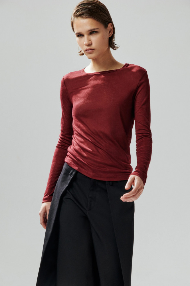 Женский лонгслив приталенного кроя из тонкой полупрозрачной ткани с добавлением вискозы и фактурой в рубчик. Высокий круглый вырез горловины без воротника. Длинные облегающие рукава с прямыми манжетами и спущенной линией плеча. Прямой нижний край без разрезов. Однотонный лонгслив в актуальных расцветках из новой осенней коллекции. Джемпер в рубчик с длинными рукавами для самых женственных, стильных и привлекательных аутфитов. Универсальный и практичный: сочетай его с любым низом и создавай аутфиты, в которых тебе будет максимально комфортно и в которых ты гарантированно не останешься без внимания.ых тебе будет максимально комфортно и в которых ты гарантированно не останешься без внимания.