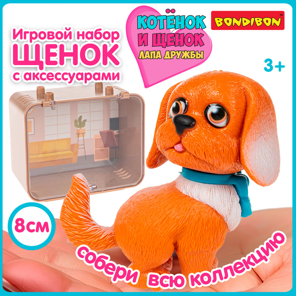 Bondibon Игровой набор «Щенок коричневый с голубым бантом в боксе»новинка -30%