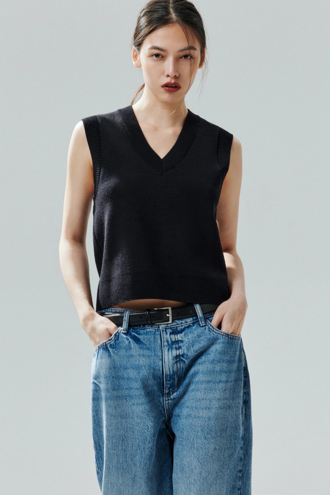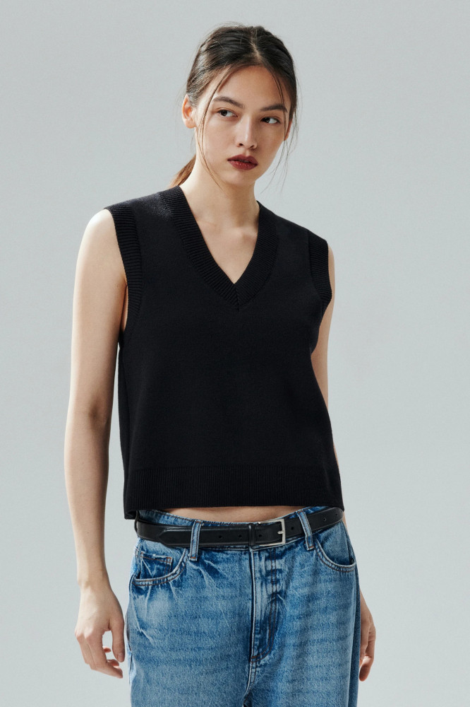 Женский жаккардовый жилет свободного кроя из мягкого и теплого вязаного трикотажа на основе вискозы. Глубокий V-образный вырез на груди. Широкие проймы под рукава с окантовкой. Прямой нижний край без разрезов и декоративных элементов. Нижний край, проймы и вырез горловины в эластичный рубчик. Стильная и теплая жаккардовая безрукавка из вязаного трикотажа для расслабленных и суперудобных луков на учебу, в офис или просто на каждый день. Сочетай эту тонкую вязаную жилетку в базовых цветах со строгими брюками или расслабленными широкими джинсами и создавай максимально комфортные и теплые аутфиты в стиле смарт-кэжуал.