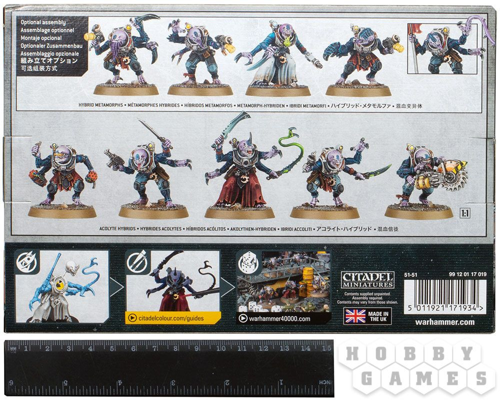 Серия: Warhammer Благоговеющие от заразившего их патриарха, Гибриды-аколиты (Acolyte Hybrids) фыркают и шепчут во мраке. Наступает время снять рваные робы, которые они используют для маскировки своей убогости, и Гибриды-аколиты карабкаются вверх и вылезают на свет дня, а их ужасающие лица искажает нечеловеческое ликование. Они представляют из себя абсолютно дикую смесь видов, от которых получили своё происхождение: скорость Первого Генокрада (Purestrain Genestealer) может, например, быть скомбинирована с коварством и хитростью человеческой расы. Эти гибриды обильно поливают неприятеля огнём, прежде чем обрушить на него лавину когтей, оружия ближнего боя и ярости их полководцев. |