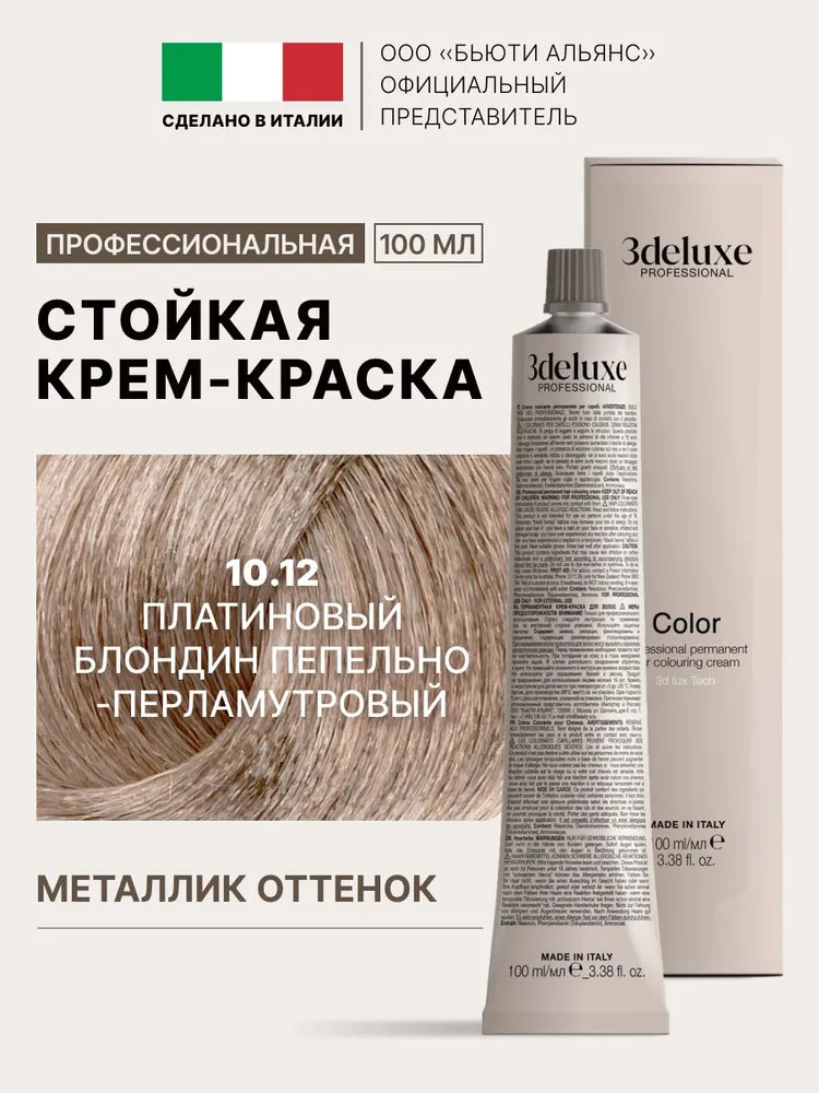 3Deluxe professional Крем-краска для волос, оттенок 10.12 Платиновый блондин перламутрово-пепельный