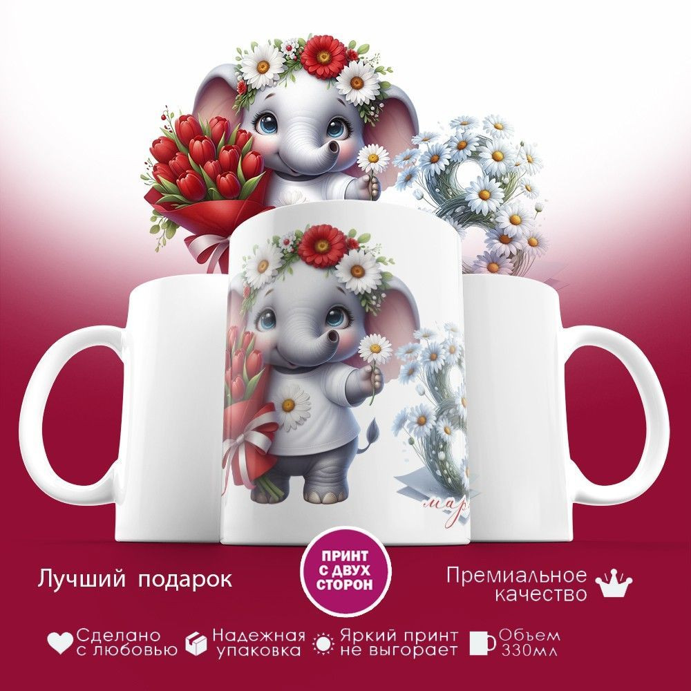 TopPoshiv Кружка с принтом «8 марта. Слоник с цветами»новинка -25%
