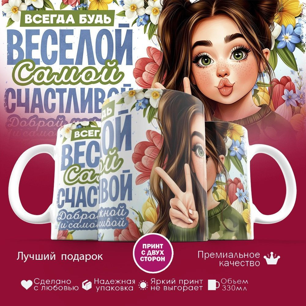 TopPoshiv Кружка с принтом «Всегда будь веселой, самой счастливой»