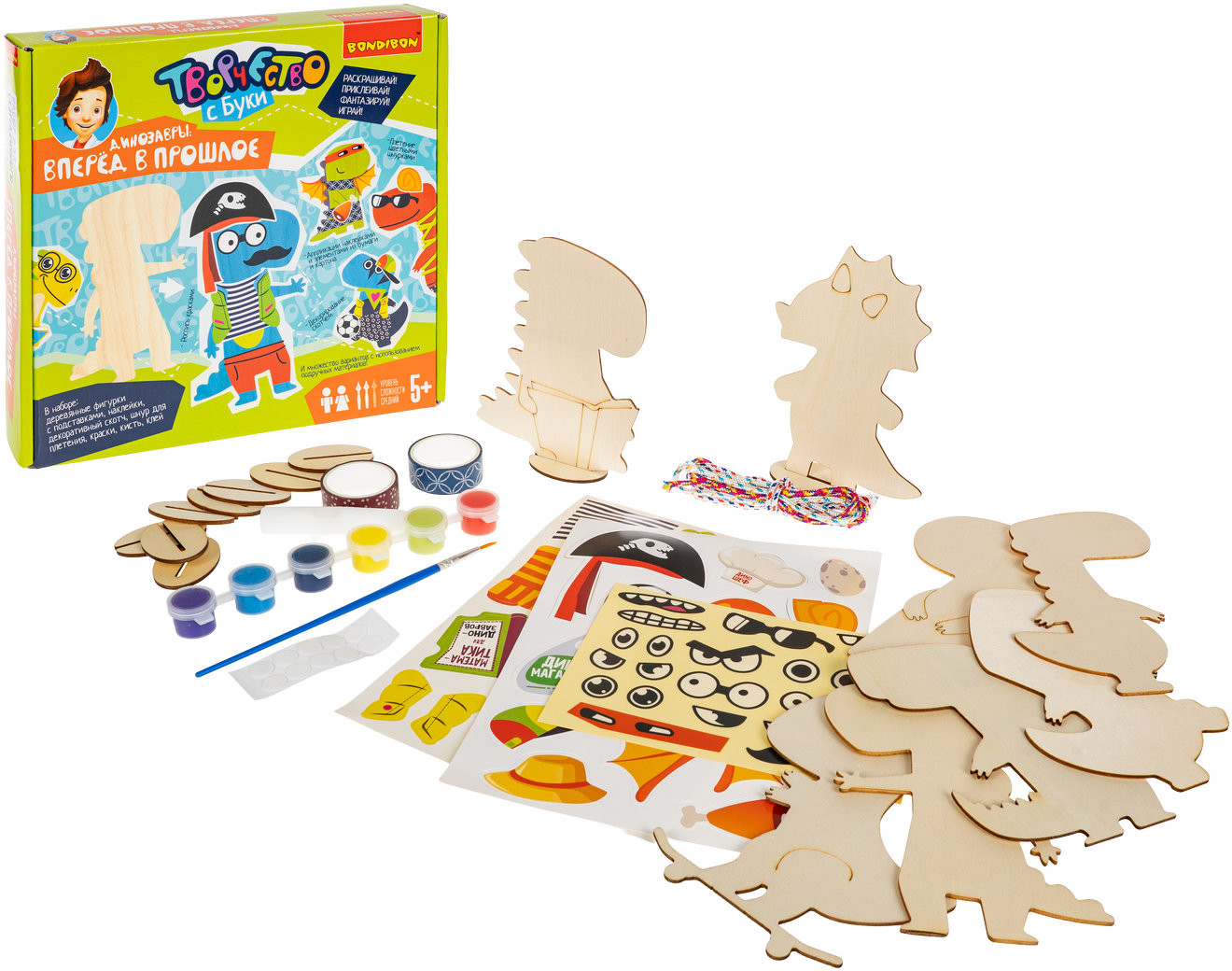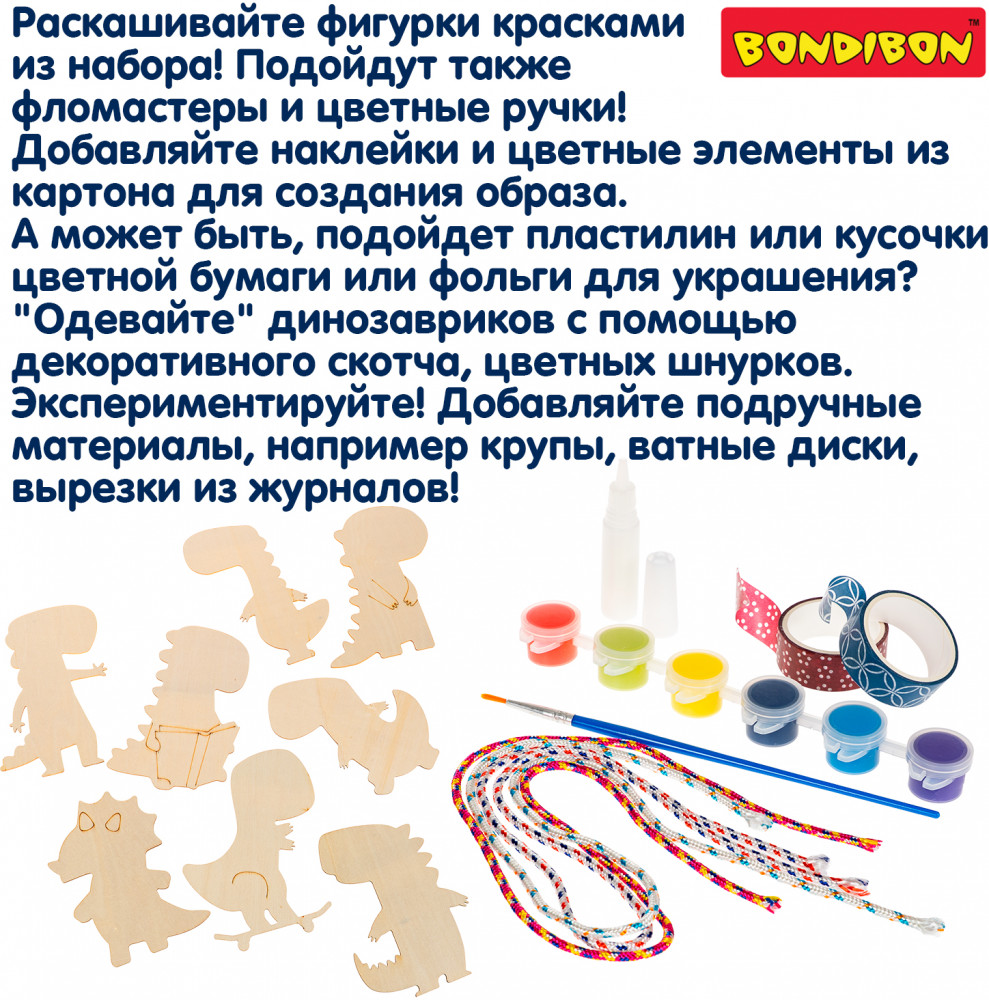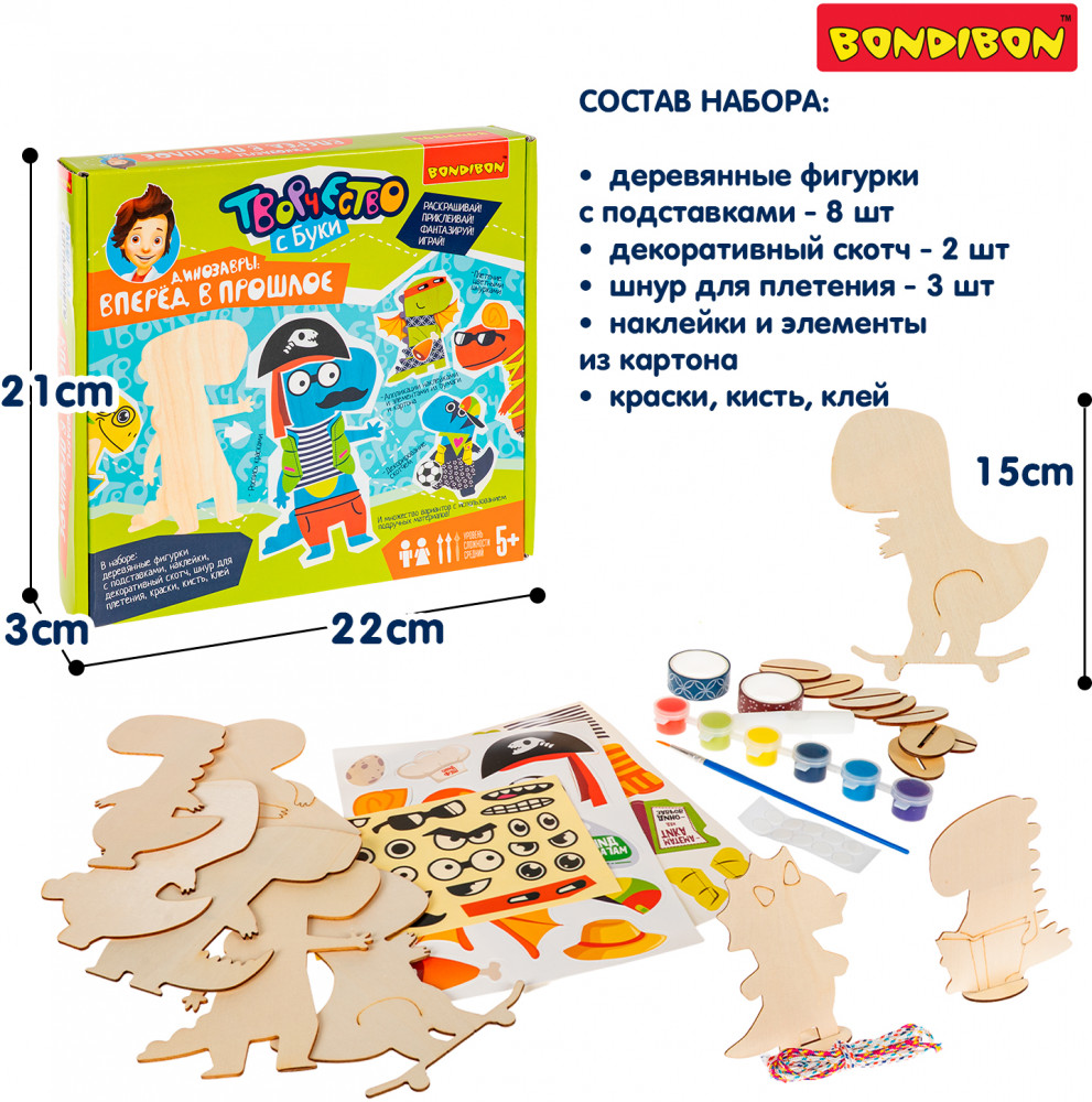 Серия: Творчество с Буки Погрузитесь в доисторический мир с ярким набором для творчества «Динозавры: вперед в прошлое» от Bondibon! Ваш ребёнок сможет не только познакомиться с весёлыми персонажами, но и сам украсить их с помощью фантазии и большого количества элементов для декора из набора. Каждая фигурка выполнена из дерева и имеет двухсторонний формат, чтобы малыш мог проявить максимум креативности. Раскрашивайте, украшайте, комбинируйте аксессуары, создавайте целую команду необычных героев — от диноповара до динопирата! Развивайте моторику, воображение, внимание и творческое мышление в процессе креативной увлекательной игры. Набор для творчества «Динозавры: вперед в прошлое» — это отличный подарок для изобретательного ребенка! Высота фигурок до 15 см. Игра для детей от 5 лет. Познакомьтесь и с другими наборами Бондибон для безграничного творчества! |