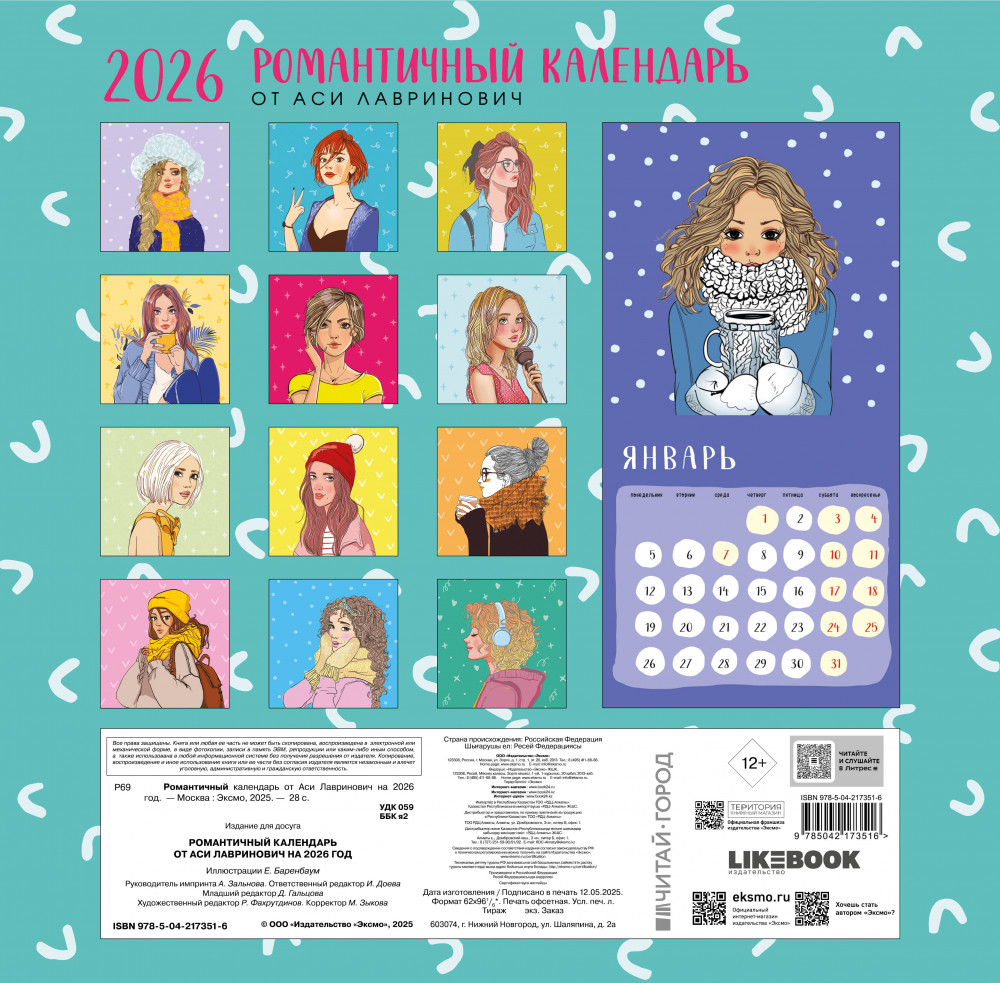 Серия: Календари настенные (300×300) Романтичный календарь от Аси Лавринович, самого милого и позитивного автора. Каждый месяц встретит вас яркими красками и очаровательными героинями из разных книг. Календарь непременно подойдет всем любителям творчества писательницы. А роскошные и красочные иллюстрации Елены Баренбаум станут идеальным украшением любого интерьера. |