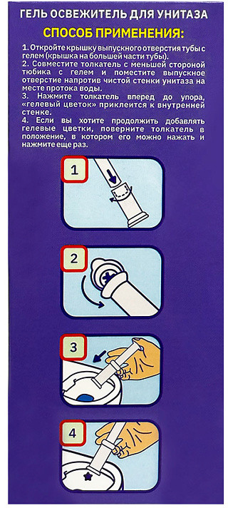 • совместите толкатель с меньшей стороной тюбика с гелем и поместите выпускное отверстие напротив чистой стенки унитаза на месте протока воды;