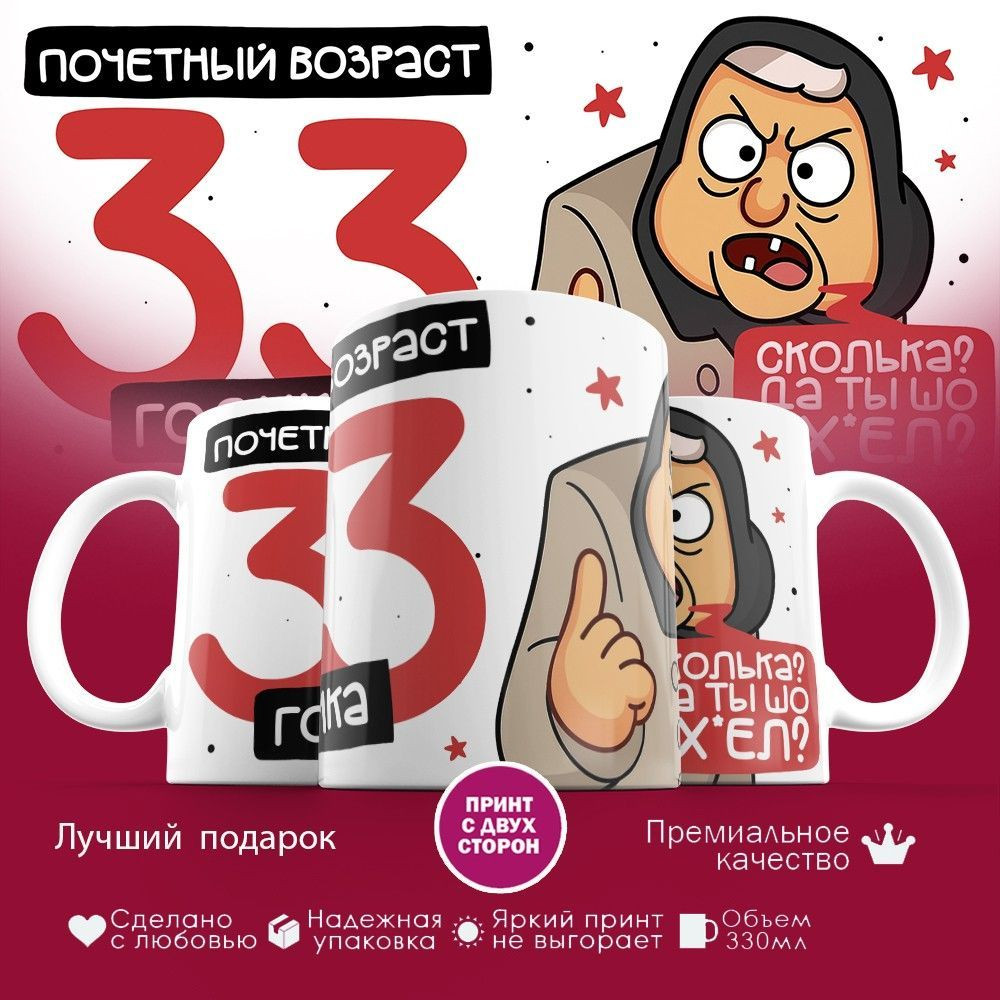 TopPoshiv Кружка с принтом «Почетный возраст 33 годика»-25% +15