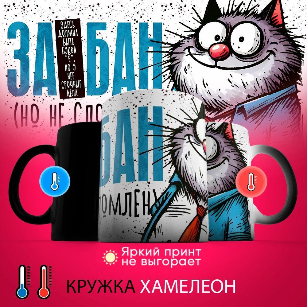 TopPoshiv Кружка-хамелеон с принтом «Кот»новинка -20%