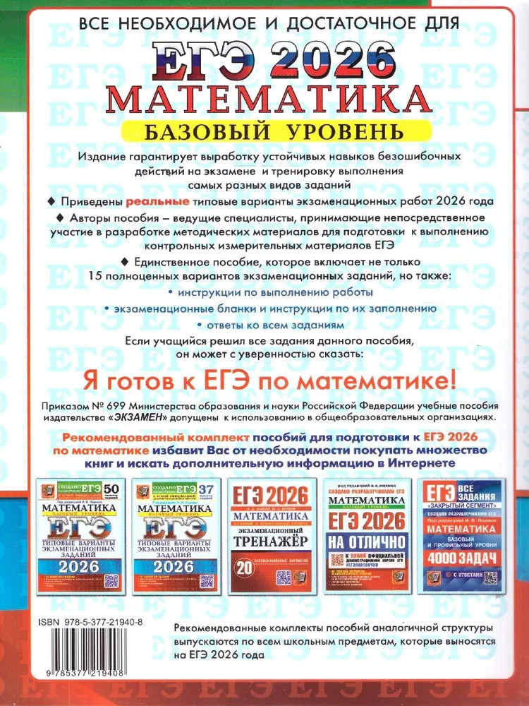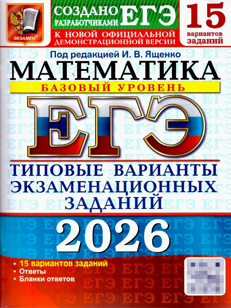 ЕГЭ 2026. Математика. Базовый уровень. 15 вариантов. Типовые варианты экзаменационных заданийновинка