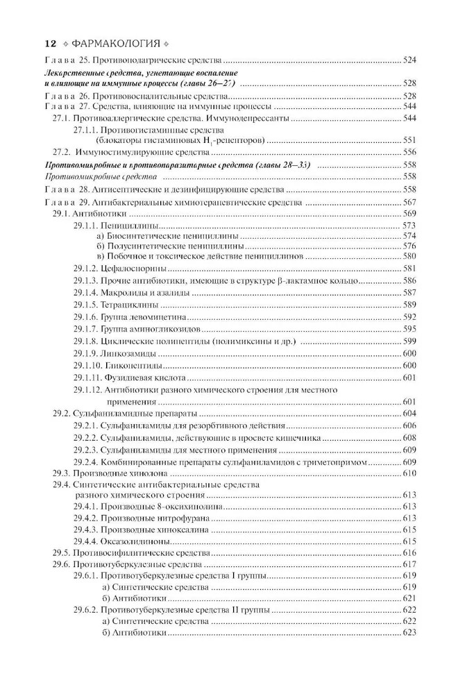 Тринадцатое издание учебника переработано и дополнено новыми данными. Учебник включает разделы о лечении и профилактике остеопороза, о фармакологии мозгового кровообращения, о новых гиполипидемических препаратах, о фармакотерапии ожирения, о новых антикоагулянтах, противогрибковых и противовирусных препаратах, о противобластомных средствах из группы моноклональных антител, ингибиторов тирозин киназ, о перспективах генной терапии и многие другие. Обсуждаются современные представления о принципах фармакотерапии ряда заболеваний. Механизм действия веществ рассматривается на основе последних достижений фундаментальной фармакологии. |