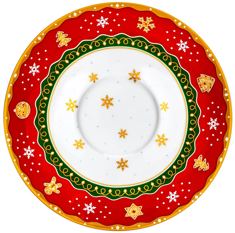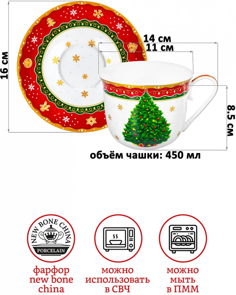 Подойдёт ценителям чая и кофе, которые любят пить из красивой и необычной посуды. Согрейтесь зимой любимым напитком: какао с маршмэллоу, ягодным чаем, горячим шоколадом или глинтвейном. Летом освежитесь домашним лимонадом или морсом. Используйте сервировочное блюдце как подставку для чашки, порадовав гостей изящной сервировкой. Положите на десертную тарелку пирожное, кусочек торта или домашнего пирога. Подойдёт не только для десертов, но и для закусок: сырной нарезки, сырокопчёной колбасы или свежих овощей и зелени. Не рекомендуется применять абразивные моющие средства. Подходят для использования в посудомоечной машине и микроволновой печи. Поставляются в дизайнерской картонной коробке — благодаря ей вам не потребуется дополнительная подарочная упаковка. Фарфоровая коллекция посуды «Новогодняя ёлка» от бренда Элан Галерея создаст в доме атмосферу волшебства и подарит праздничное настроение. В серии вы найдёте всё необходимое, чтобы встретить праздник в тёплом семейном кругу. Эта коллекция посуды станет приятным подарком вашим близким на Новый год и будет долго напоминать о вашей дружбе!