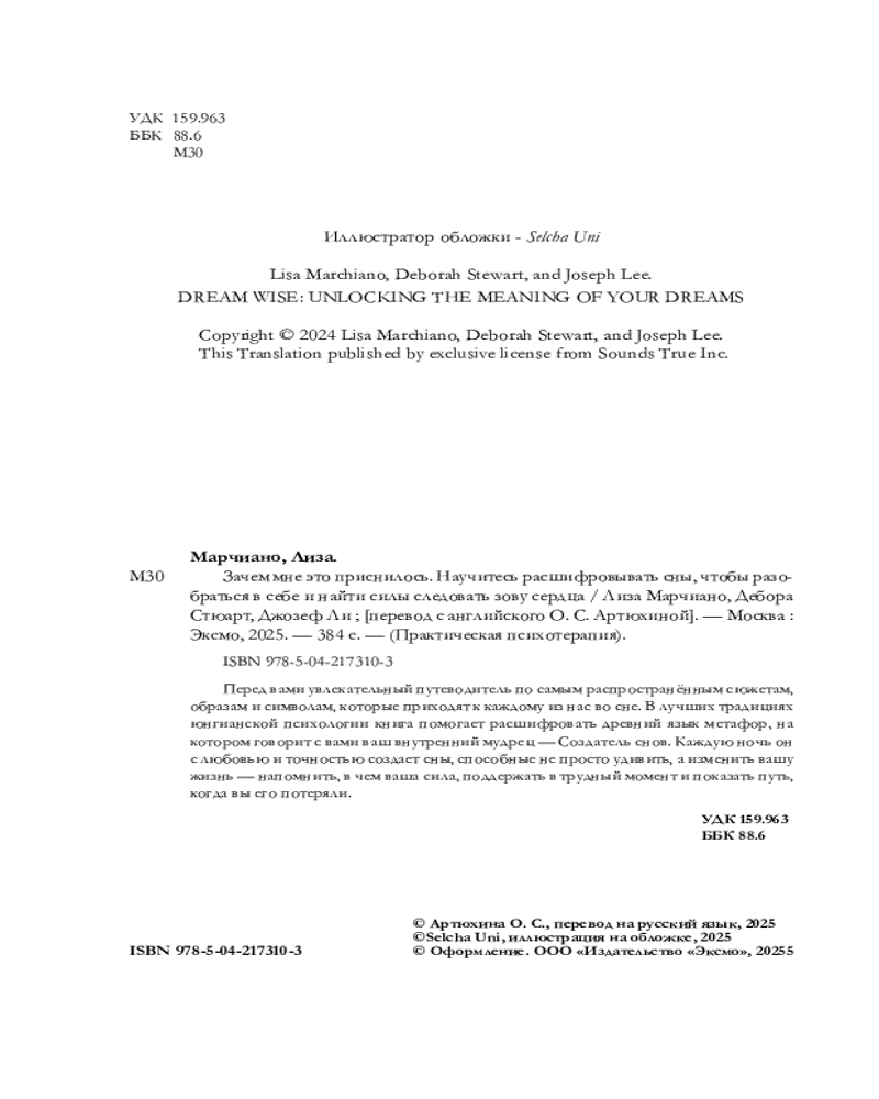 Зачем мне это приснилось. Научитесь расшифровывать сны, чтобы разобраться в себе и следовать зову сердцаЛиза Марчиано, Джозеф Ли, Дебора Д. Стюарт новинка