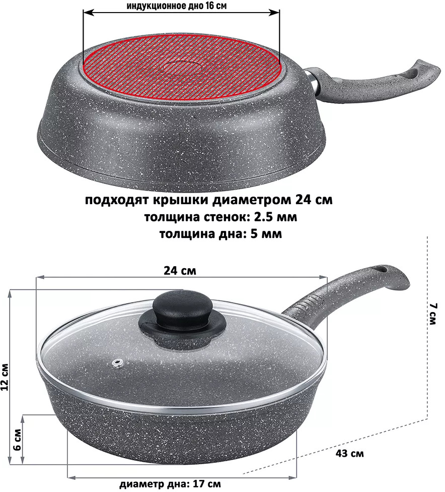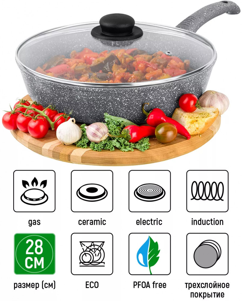 Elan Gallery Набор посуды для приготовления из литого алюминия с крышками «Серый мрамор»