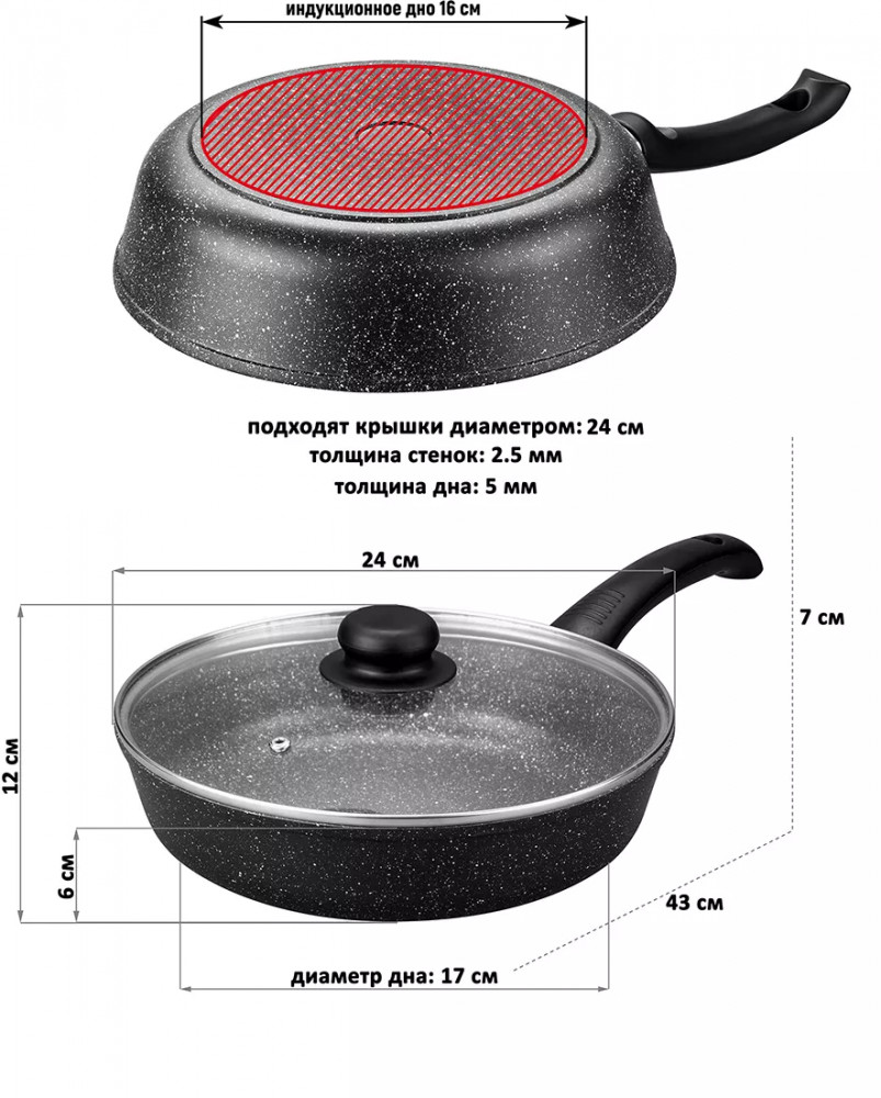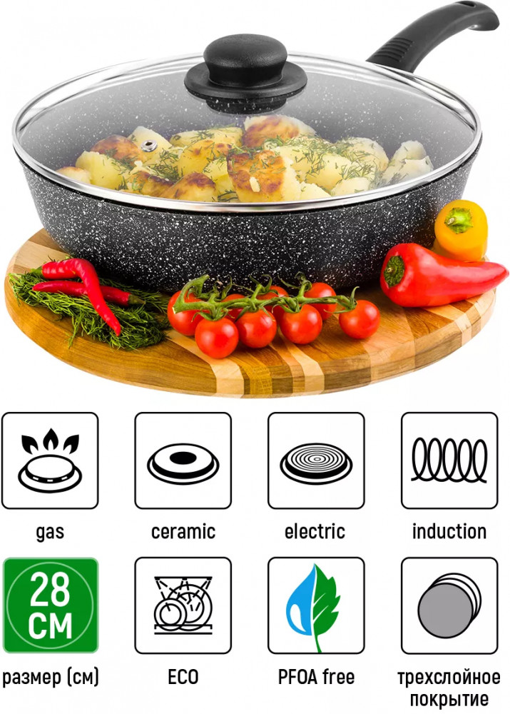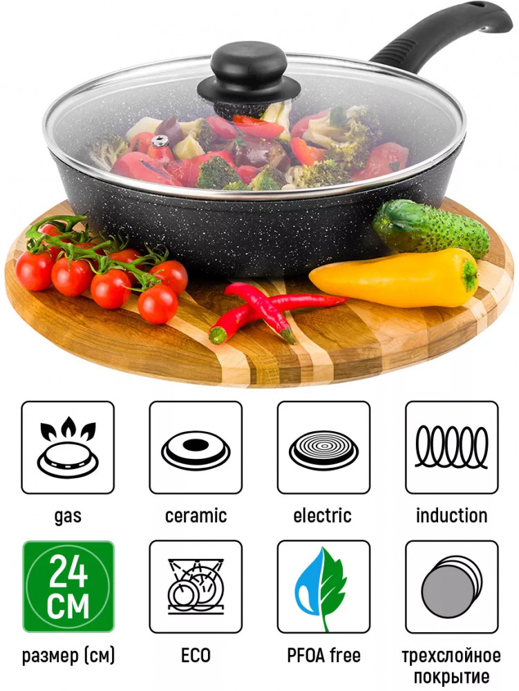 Elan Gallery Набор посуды для приготовления из литого алюминия с крышками «Черный мрамор»
