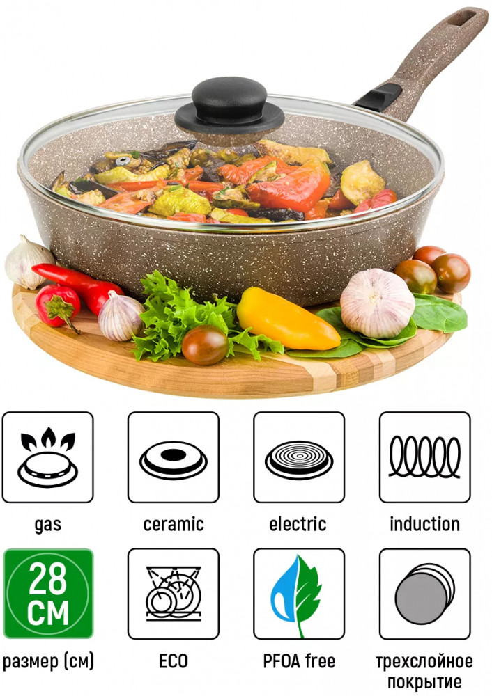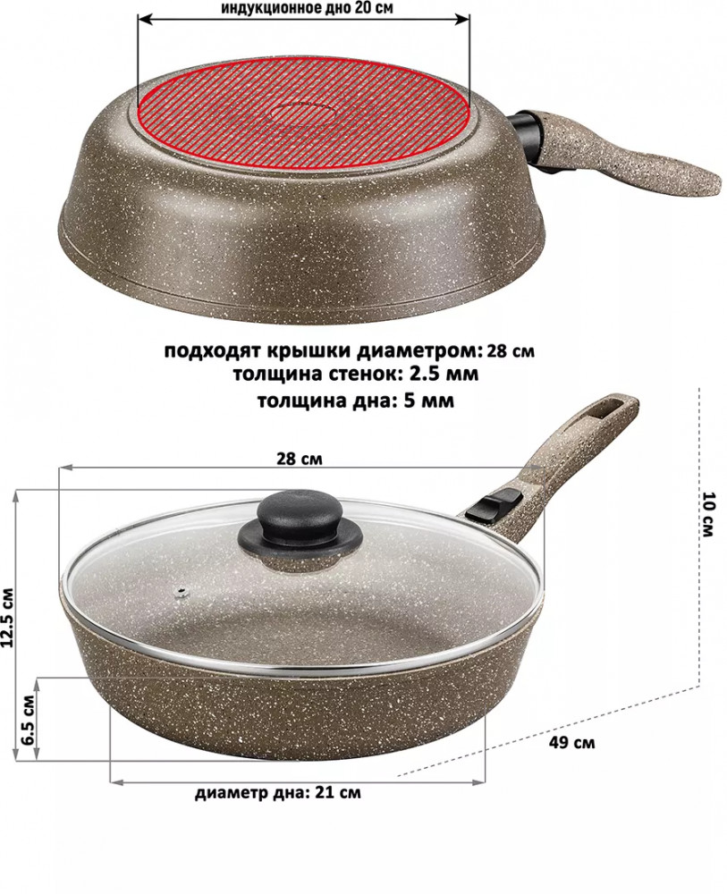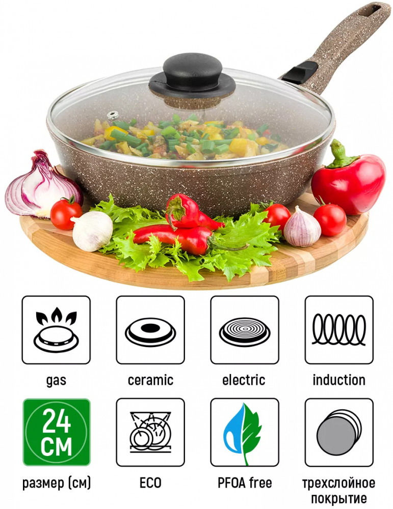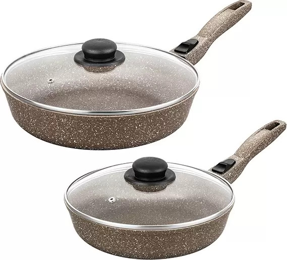 Elan Gallery Набор посуды для приготовления из литого алюминия с крышками и съемными ручками «Коричневый мрамор»