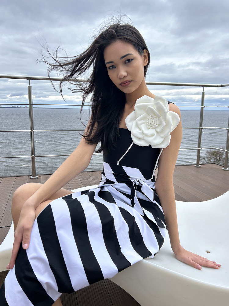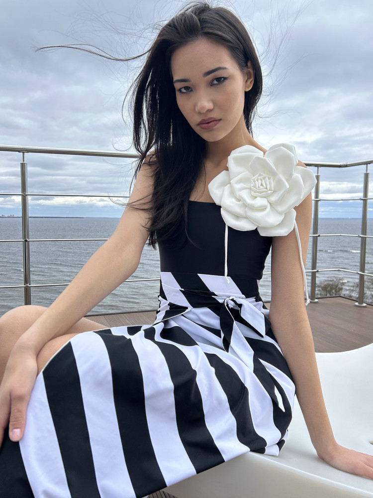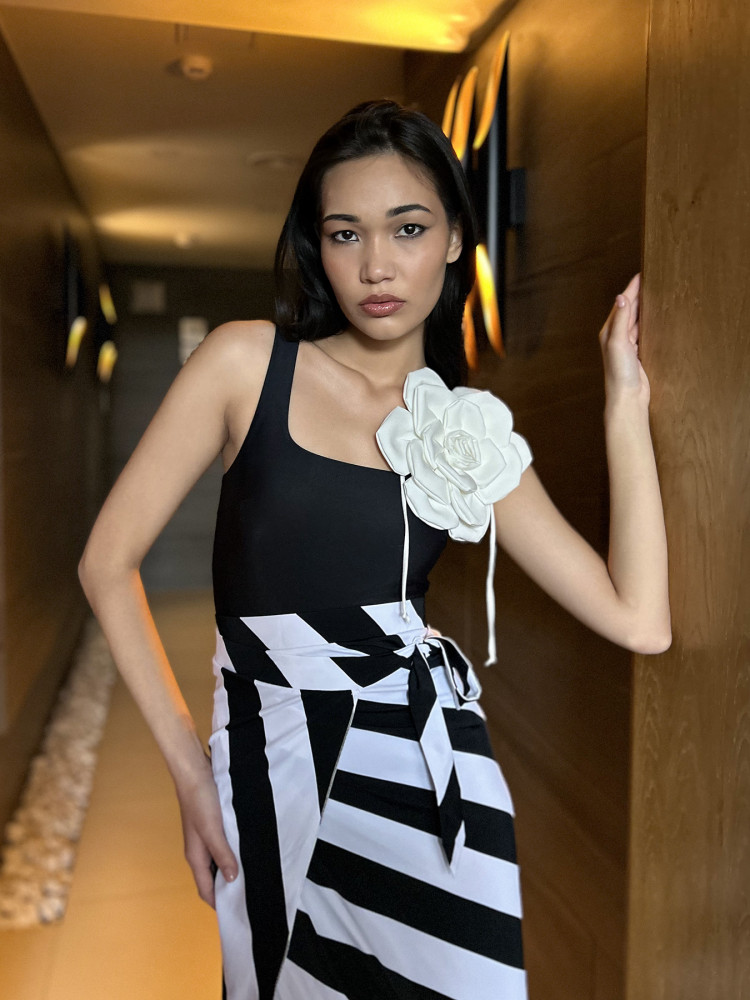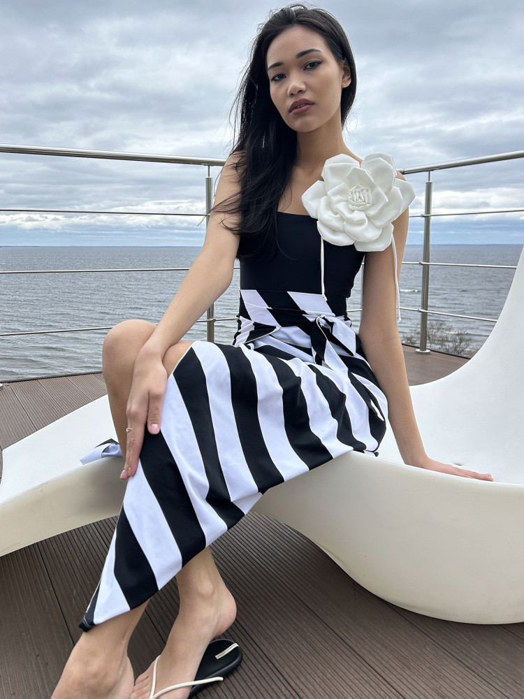 Женский слитный купальник классического силуэта с изящным элегантным вырезом каре, со съемными внутренними чашками. Идеально подойдет любому типу телосложения. Имеет подкладку. В качестве оригинального украшения — эффектный объемный цветок ручной работы, который можно повязать на бретель купальника, а также как самостоятельное украшение в виде браслета или брелока на сумку. С юбкой-парео MF-150 — шикарный курортный образ.