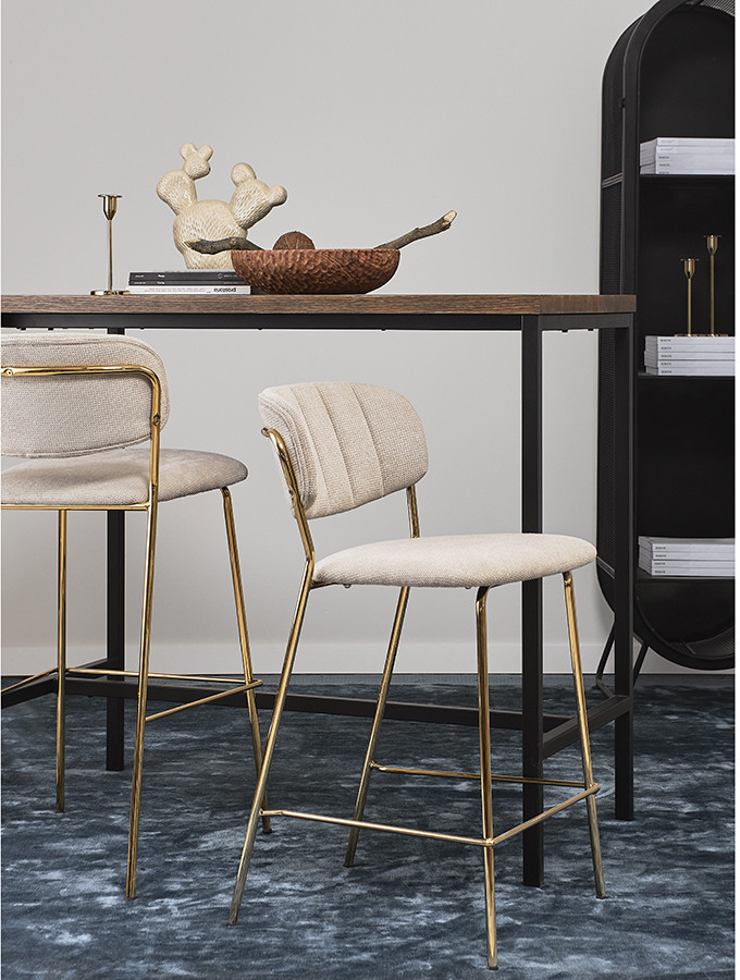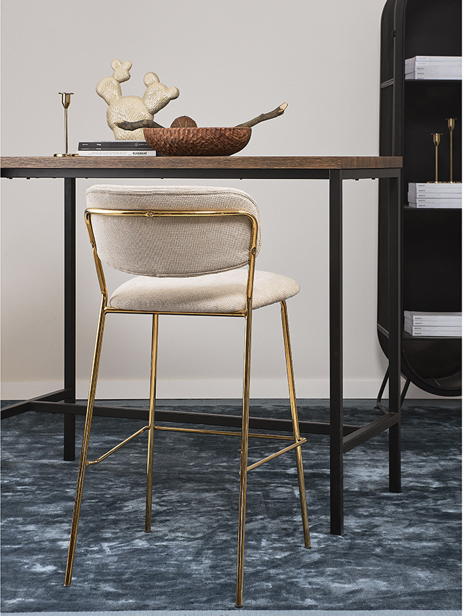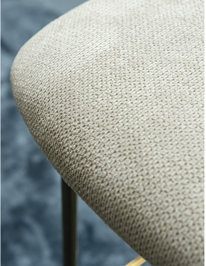 Стул барный Eirill с обивкой из фактурного шенилла смотрится стильно и презентабельно. Материал приятный на ощупь, износостойкий и нетребовательный в уходе. Комфорт при сидении достигается за счет широкой, полукруглой спинки, глубокой посадки и высоких подлокотников с мягкими накладками. Плавные формы и декоративная строчка делают дизайн элегантным. Практичность и долговечность мебели обеспечивает прочный и надежный железный каркас. Наличие специальной перекладины позволяет удобно разместить ноги во время отдыха. Такой стул великолепно дополнит барную зону в жилом помещении, кафе или ресторане. Модель органично сочетается с такими интерьерными решениями, как неоклассика, фьюжн, эклектика, поп-арт, гранж и другими.