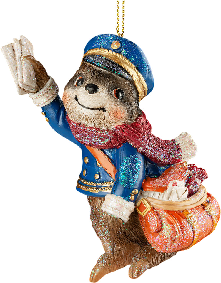 Серия: Мир детства Милый ленивец в униформе почтальона несет сумку, наполненную новогодними поздравлениями. Украшение выполнено в ретро-стиле. Детали тщательно прорисованы, частично украшены блестками. Изделие является относительно тяжелым, предпочтительно использование на искусственной елке. |