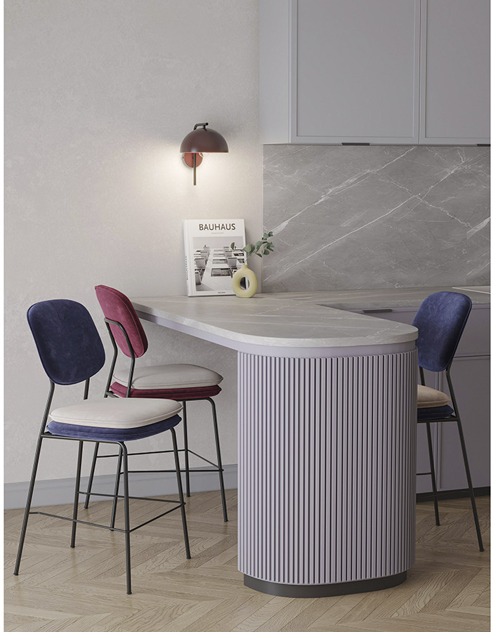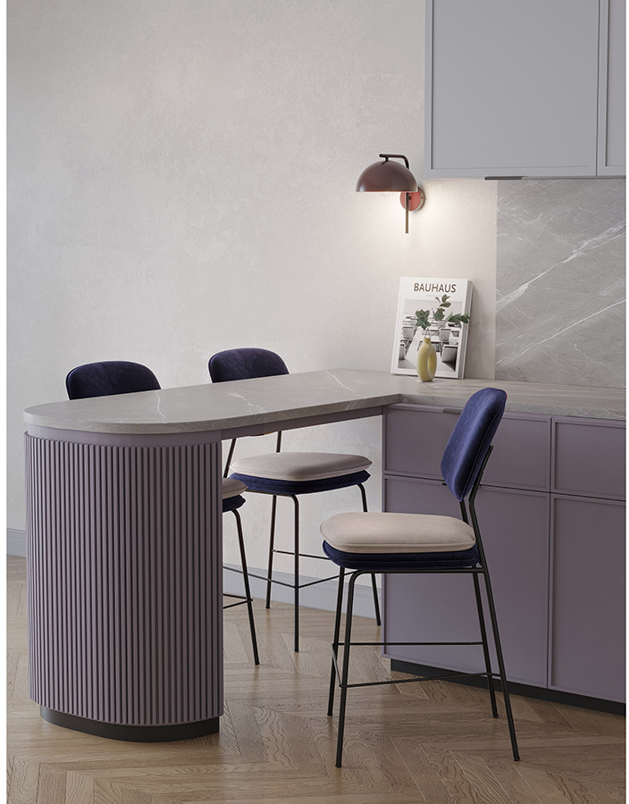 Стул полубарный Pea с контрастным кантом и мягкой обивкой из бархатистого велюра станет настоящим украшением интерьера и идеальным выбором для ценителей качественной и элегантной мебели.