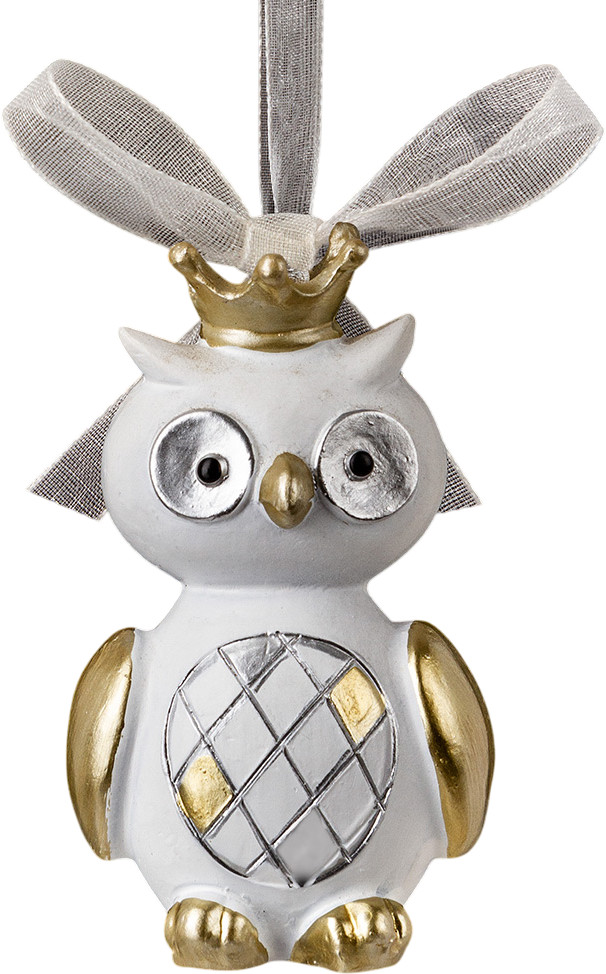 Серия: Магия золота Милый совенок выделяется золотыми крыльями и серебряными глазами. На животе птицы изображен геометрический узор в виде ромбиков. На голове красуется корона. Украшение отличается тонко выполненными деталями и оснащено шелковистой ленточкой для подвешивания. Изделие является относительно тяжелым, предпочтительно использование на искусственной елке или в качестве сувенира. Подходит для елок до 140 см. |