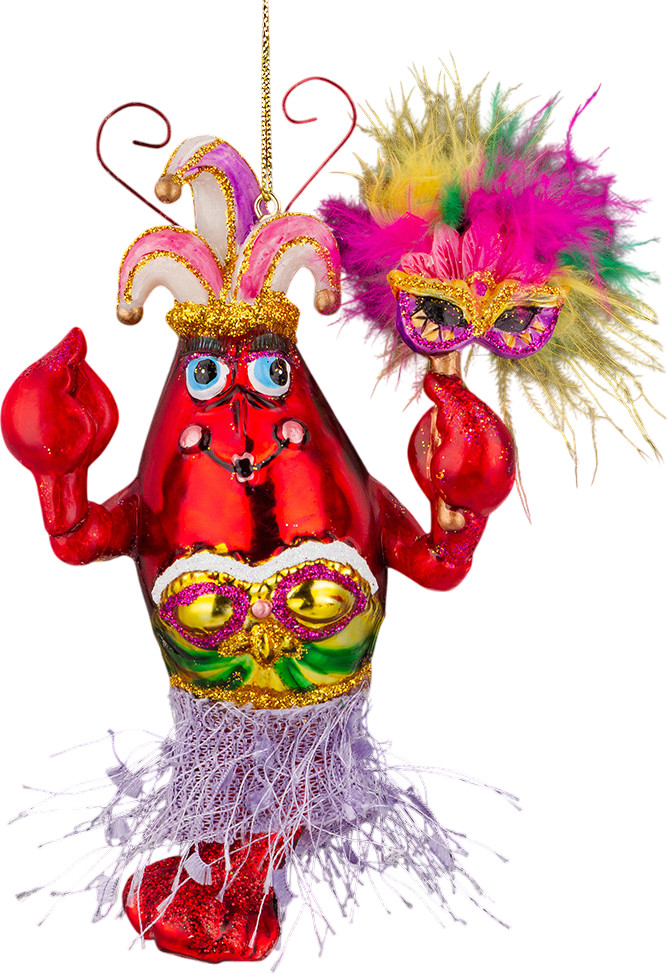 Серия: Венецианский Карнавал Яркие веселые персонажи Венецианского карнавала на праздничной елке вовлекут в вихрь итальянского веселья! Дама-лобстер подобрала для фестиваля смелый наряд и эффектный макияж с длинными накладными ресницами. Бахрома на юбке эффектно колышется во время танца. В клешне она держит маску, декорированную пушистыми перьями. Изделие выполнено из стекла высокого качества. Клешни, маска и колпак сделаны из полирезины, что позволяет максимально точно передать детализацию персонажа. Украшение достаточно тяжелое и больше подходит для искусственных елок. |