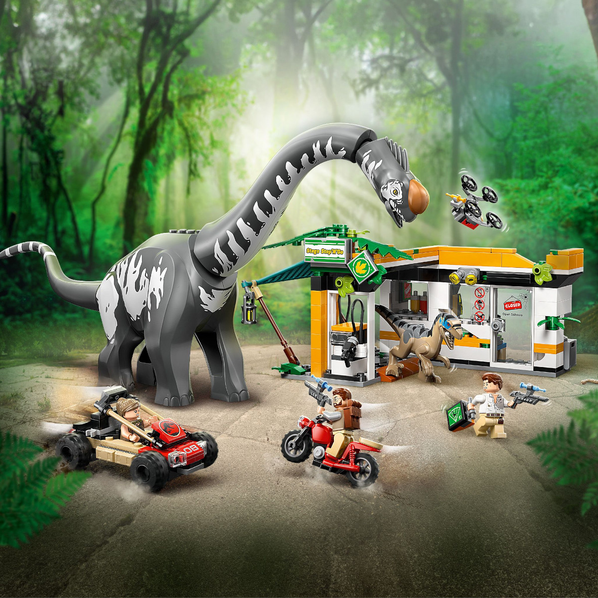 LEGO (ЛЕГО) Конструктор Jurassic World 76973 Миссия по отслеживанию велоцираптора и титанозавра. Raptor & Titanosaurus Tracking Missionновинка В данный момент этот товар отсутствует в продаже. Возможно, у нас найдется аналогичный или похожий товар здесь. Серия: LEGO Jurassic World Захватывающие погони и приключения ждут детей и киноманов от 7 лет и старше в этом наборе LEGO® Jurassic World «Миссия по отслеживанию раптора и титанозавра» (76973). Этот подарок для мальчиков и девочек включает в себя литые фигурки титанозавра и велоцираптора, а также 3 минифигурки: Зоры Беннетт, Мартина Кребса и доктора Генри Лумиса. У велоцираптора подвижная челюсть, а у титанозавра — шея, голова и хвост. Интерактивный игровой набор включает в себя зарядную станцию, внедорожник с прицепом, контейнер для шприцов с тремя шприцами, мотоцикл, сборный дрон, площадку для лагеря с функцией падающего дерева и многое другое. |