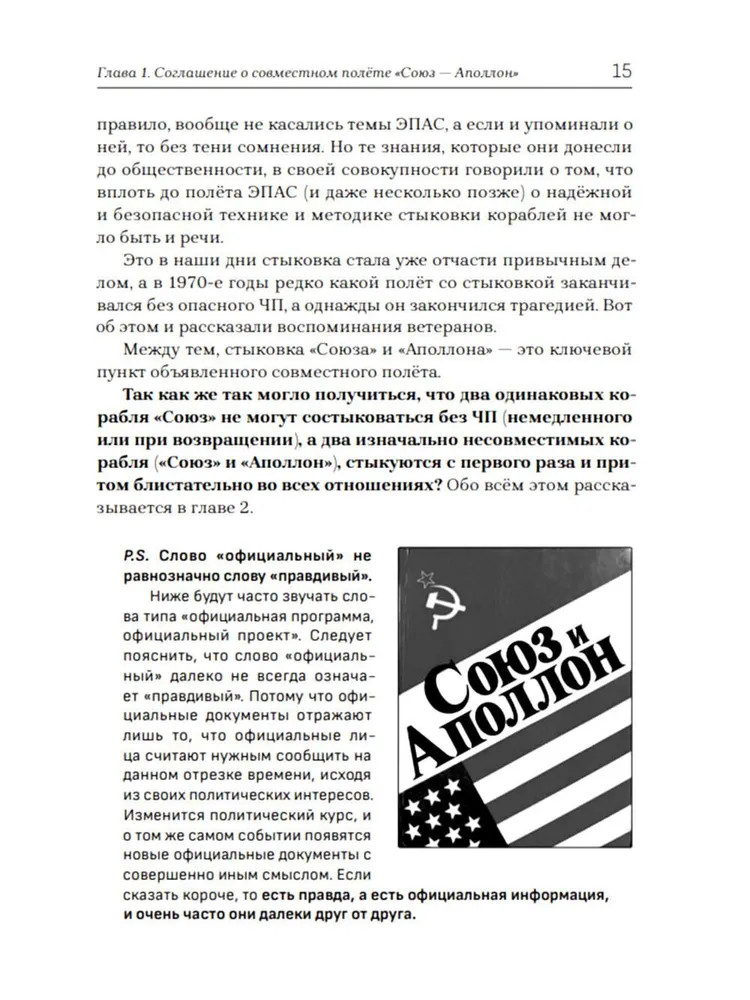 50 лет назад холодные отношения СССР и США стали постепенно теплеть: возникало всё больше контактов на разных уровнях, начали развиваться программы сотрудничества, СССР стал получать инвестиции от США. Но высшей точкой, которая ознаменовала эпоху разрядки международной напряжённости, стало «космическое рукопожатие» советского космонавта и американского астронавта на орбите Земли. Долгие годы это событие — стыковка и совместный полёт советского «Союза-19» и американского «Аполлона» — не подвергалось сомнению: существует большое количество достоверных свидетельств (фотографии, видеозаписи, интервью, книги, фильмы, запись прямой трансляции с орбиты). Но настолько ли достоверны эти свидетельства, как старались представить руководители НАСА и Роскосмоса? Возможно ли фотографии, сделанные на Земле, выдать за космические? Прямая трансляция или видеозапись? Какую выгоду получали Советский Союз и Америка от «совместного полёта»? Почему период разрядки сменился новым витком ещё более сурового международного противостояния? Через 50 лет после успешной стыковки неудобные вопросы только начали появляться. И над ответами на некоторые из них предлагает поразмышлять автор данной книги — доктор физико-математических наук Александр Иванович Попов. |