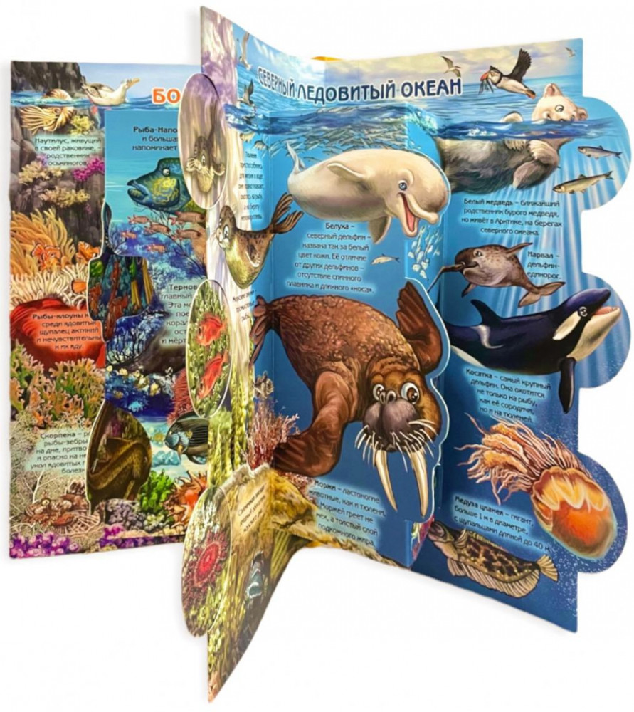 Серия: Колесо обозрения Мировой океан занимает огромную часть нашей планеты. Только представьте, сколько растений и животных скрывается в его глубинах! А ещё моря и океаны хранят невероятные тайны цивилизаций и культур. Как выглядят обитатели морских глубин, какие клады и сокровища они стерегут? Ответы на эти вопросы на страницах нашей необычной книги. Она напоминает карусель с объемными картинками, которую можно раскрыть на 360 градусов! |