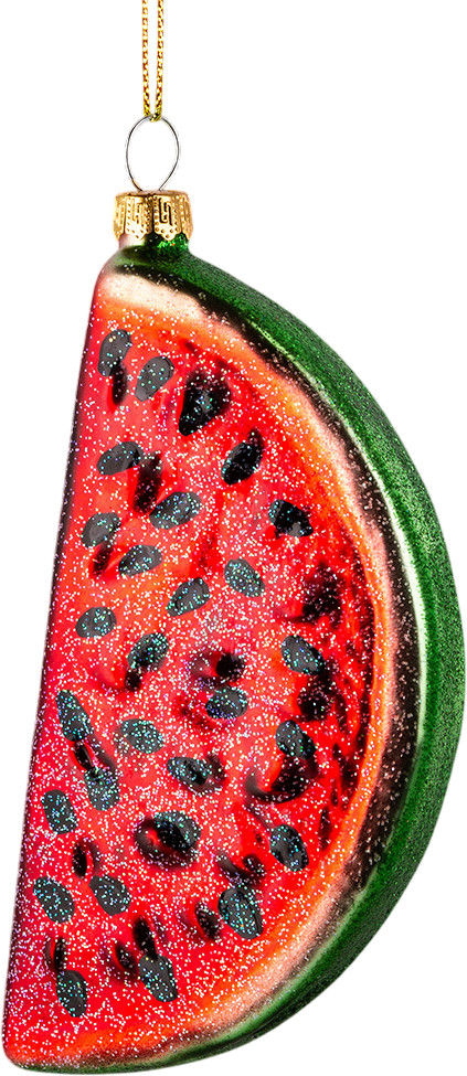 Серия: Скатерть-самобранка Если праздничной елочке не хватает витаминов, игрушки в виде овощей и фруктов легко это исправят. Крупная долька арбуза выделяется ярким натуралистичным окрасом, каждая семечка аккуратно прорисована. Полупрозрачные белые блестки создают эффект засахаренности. Украшение выполнено из стекла высокого качества. Сверкающие краски добавляют атмосферу волшебства и праздника. Изделия серии Скатерть-самобранка созданы для настоящих гурманов и сладкоежек. |