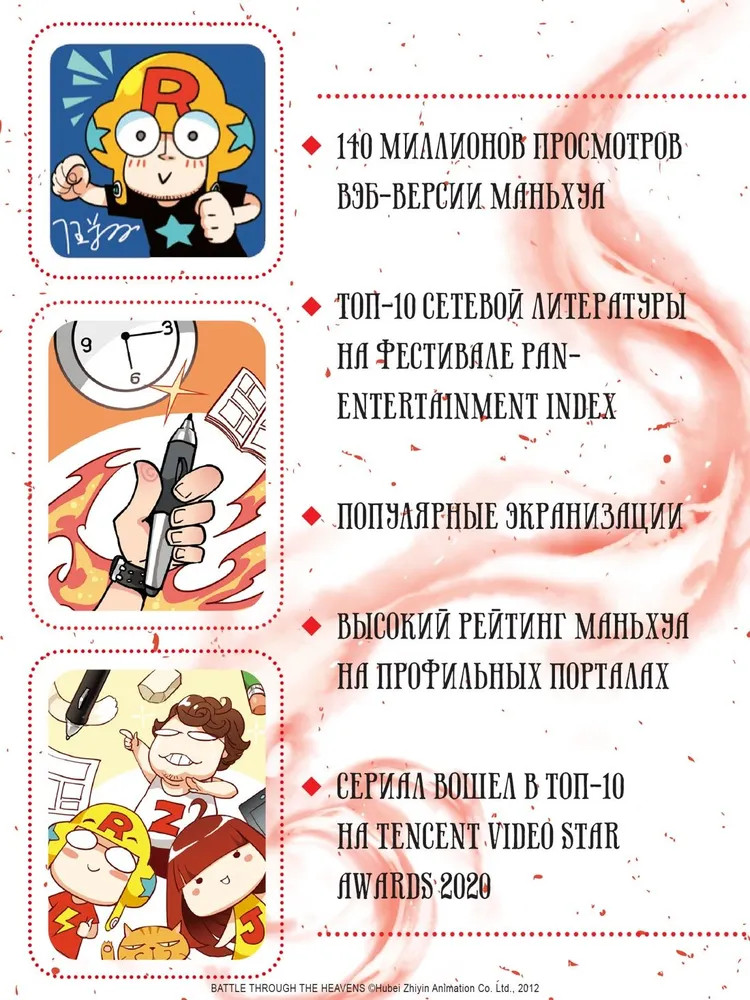 Серия: Графические романы Когда-то Янь был одним из самых талантливых юношей в клане Сяо, пока внезапно не потерял свою боевую ци. В реалиях этого мира он быстро стал посмешищем для всего клана, и Сяо Яня перестали воспринимать всерьез. Даже его невеста Налань, наследница могущественного клана Юньлань, решила расторгнуть помолвку, о которой было объявлено еще в их детстве. Будучи уже на грани отчаяния, Янь неожиданно обнаруживает в кольце умершей матери дух Яо Чэня — мастера по изготовлению эликсиров. Он обещает помочь юноше вернуть его силу до Церемонии совершеннолетия. Задача кажется невыполнимой — ведь старейшины специально изменили дату проведения церемонии. Вопреки всему Сяо Янь настроен решительно — он должен доказать своей бывшей невесте и всем злопыхателям, что он способен на многое... |