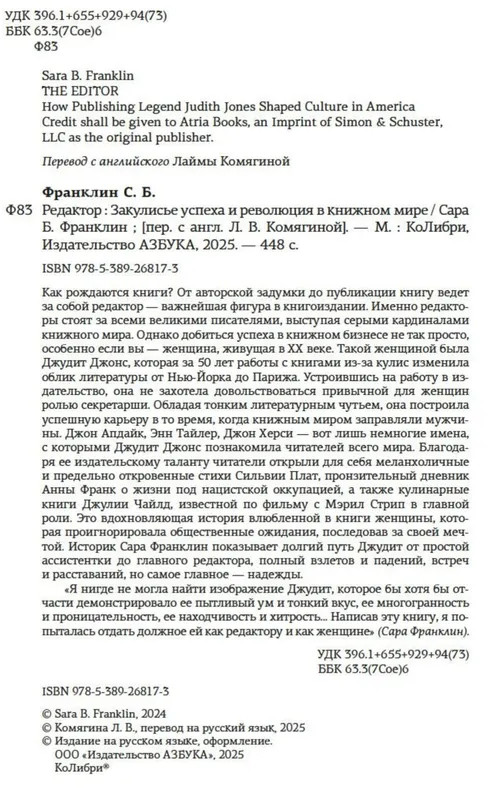| Редактор. Закулисье успеха и революция в книжном мире Сара Б. Франклин