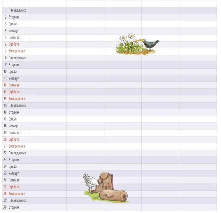 Серия: Петсон и Финдус Традиционный семейный календарь на 2026 год с любимыми героями Свена Нурдквиста. Он оформлен в виде планера: слева числа и дни недели, справа — пять столбцов с пустыми ячейками. Столбики можно подписать, а затем добавить дни рождения друзей или составить список дел на каждый день. Каждый месяц начинается с картинки из книг о Петсоне и Финдусе. Календарь вешается на гвоздик. |