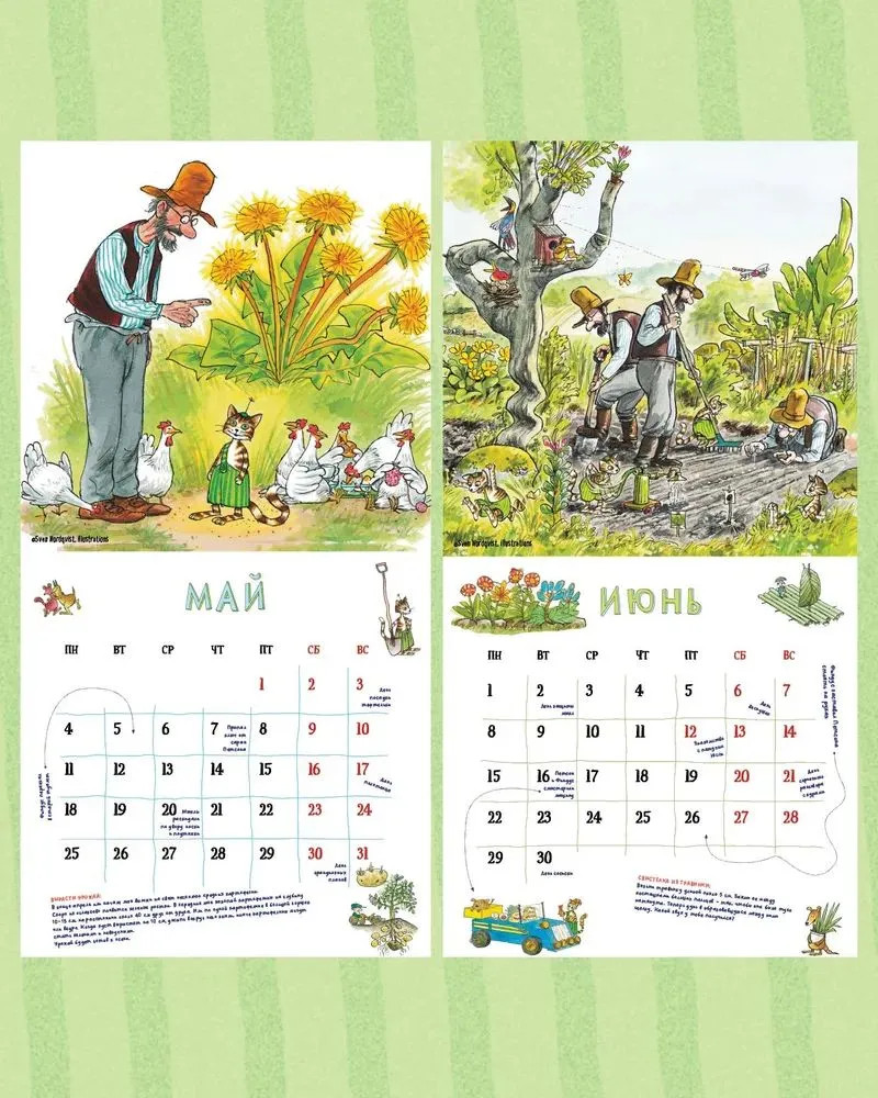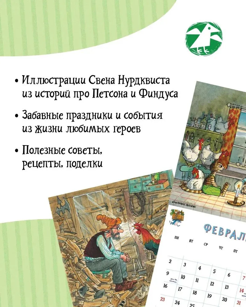 Серия: Петсон и Финдус Петсон и Финдус подготовили целый календарь на будущий год, каждый месяц которого наполнен приключениями и сюрпризами! Вместе с героями вам предстоит отпраздновать множество событий, которые то и дело отмечают мюклы! Петсон и Финдус оставили много напоминаний на полях календаря — чтобы вы не забыли о самом интересном. |