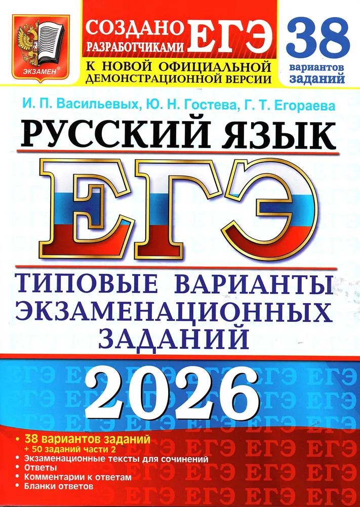 ЕГЭ 2026. Русский язык. 38 вариантов + 50 заданий части 2. Типовые варианты экзаменационных заданийГалина Тимофеевна Егораева, Ирина Павловна Васильевых, Юлия Николаевна Гостева новинка