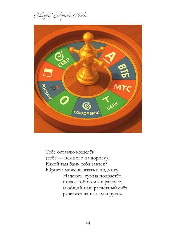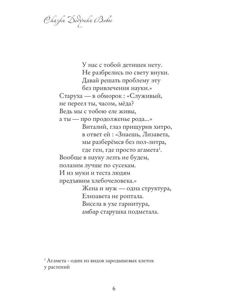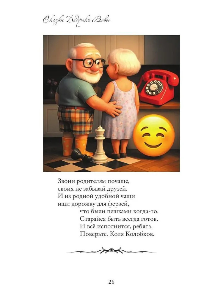 Серия: Сказки в стихах «Новый Колобок» — это стихотворная сказка современного автора о приключениях Николая Витальевича Колобкова, хлебочеловека, собранного по сусекам крестьянского дома, из которого он уходит в самостоятельное турне по родному лесу, российским просторам и Москве, встречая на пути неожиданных персонажей и выходя из непростых, зачастую, ситуаций. Никто никого не съедает, все остаются живы и здоровы (это основной принцип сказок Дедушки Вовы). Лёгкий слог автора и ненавязчивый юмор повествования доставят вам огромное удовольствие и обеспечат незабываемые впечатления. |