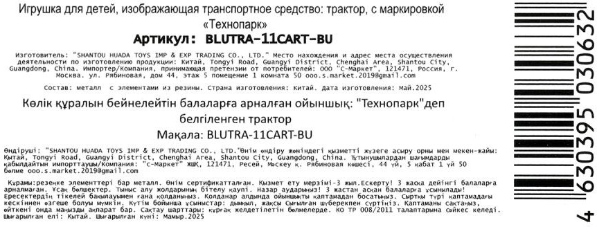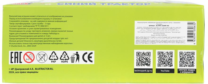 Технопарк Машина инерционная «Синий Трактор с телегой»новинка -35%