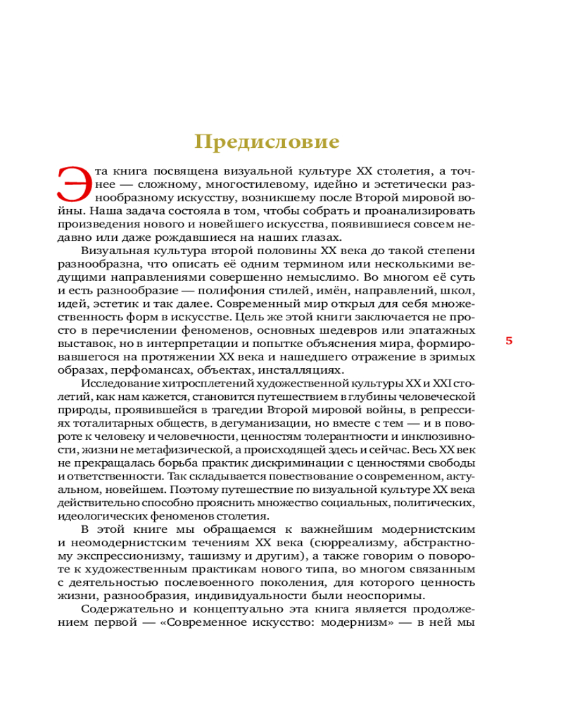 В этом издании, посвященном визуальной культуре XX столетия, можно найти ответы на эти и многие другие вопросы. Авторы собрали и проанализировали художественные произведения, прошлого и нынешнего столетия. XX век настолько многообразен, что описать его культуру одним словом или свести к нескольким основным направлениям невозможно, но именно в этом и заключается её суть и разнообразие. Сегодня общество открыло для себя множественность форм в искусстве. Эта книга не просто перечисляет феномены, основные шедевры или эпатажные выставки, но интерпретирует и объясняет уникальную картину мира новых и новейших эстетических практик. Сюда вошли самые интересные и радикальные постмодернистские трансформации, свершившиеся во второй половине XX века и начале XXI. |